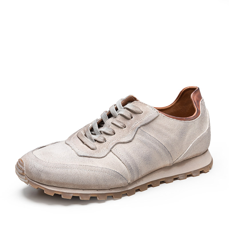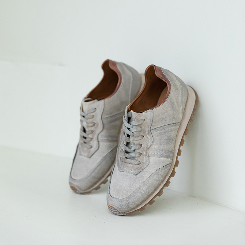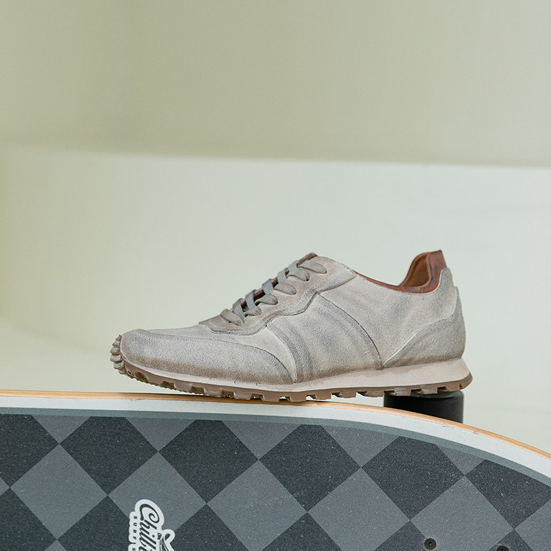 周莹国潮纯手工复古做旧废土风脏脏阿甘运动休闲鞋反绒牛皮男鞋
