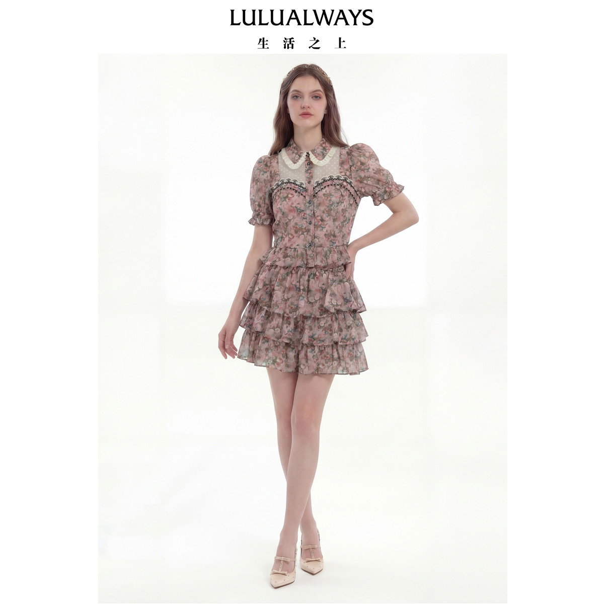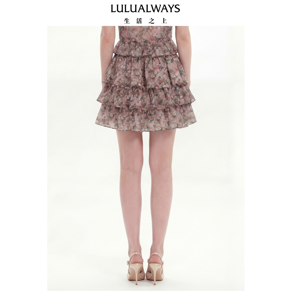 淘宝LULUALWAYS我爱露露26夏季新款复古甜妹风粉色蛋糕裙欧根纱半身裙