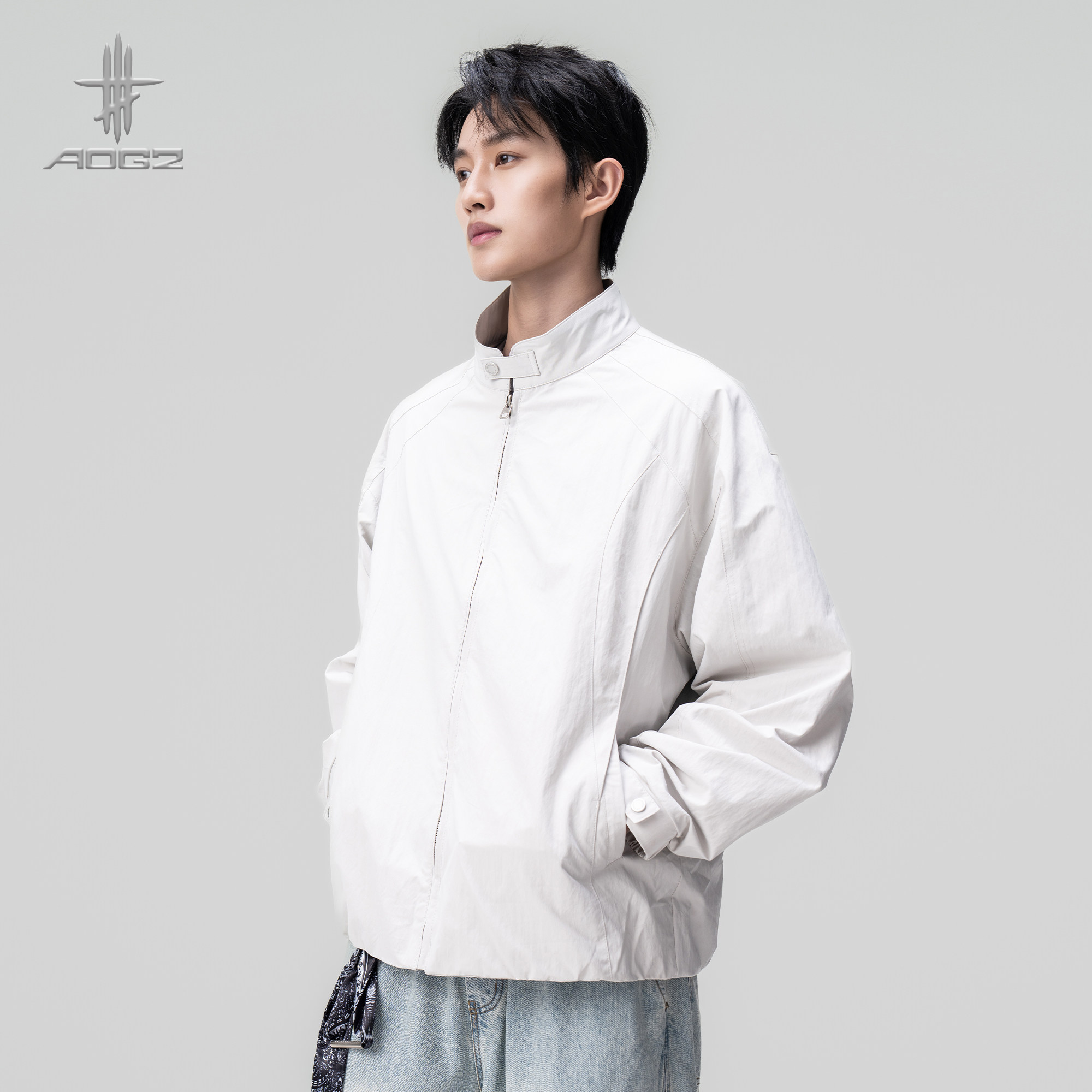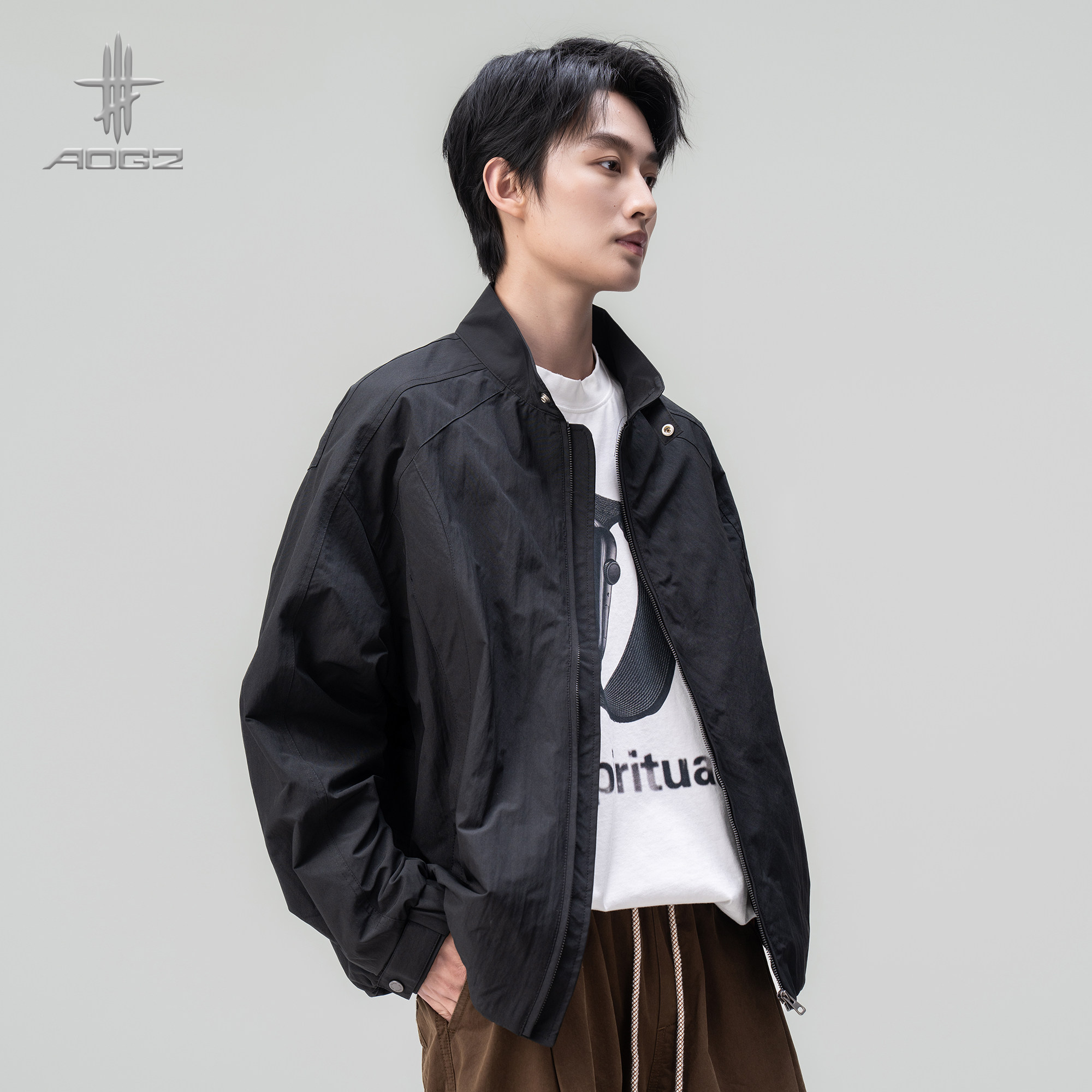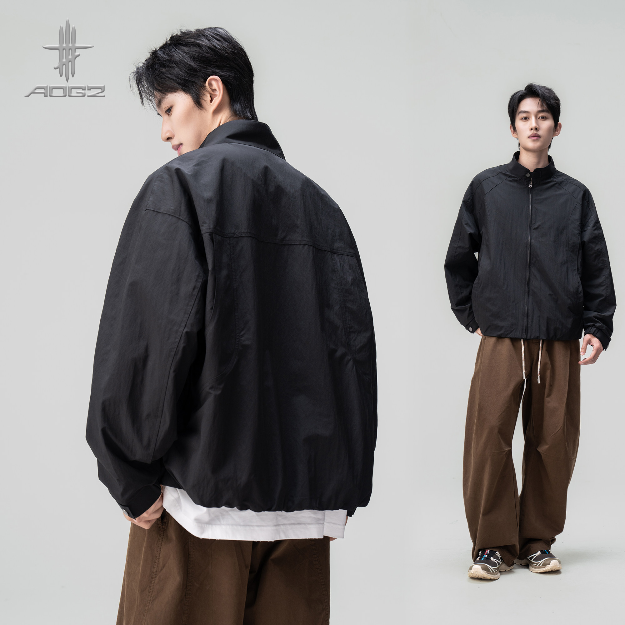 AOGZ立领哈灵顿外套2026春季新款男女生户外宽松巴恩风夹克上衣潮