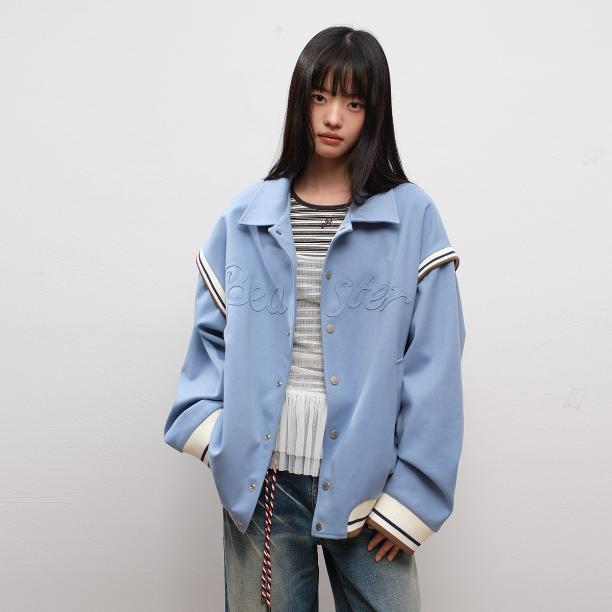 BEASTER复古翻领绣花棒球服男秋冬潮牌休闲情侣夹克外套女