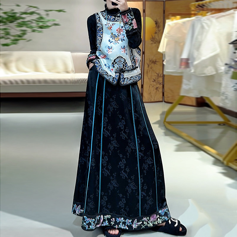新中式复古半身裙高端日常可穿宽松长款改良汉服女国风马面裙半裙