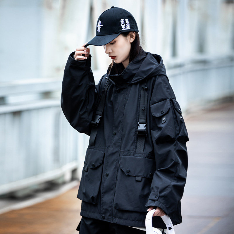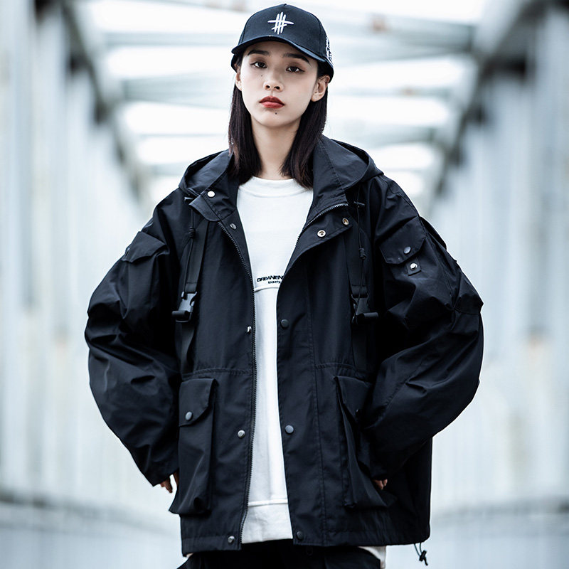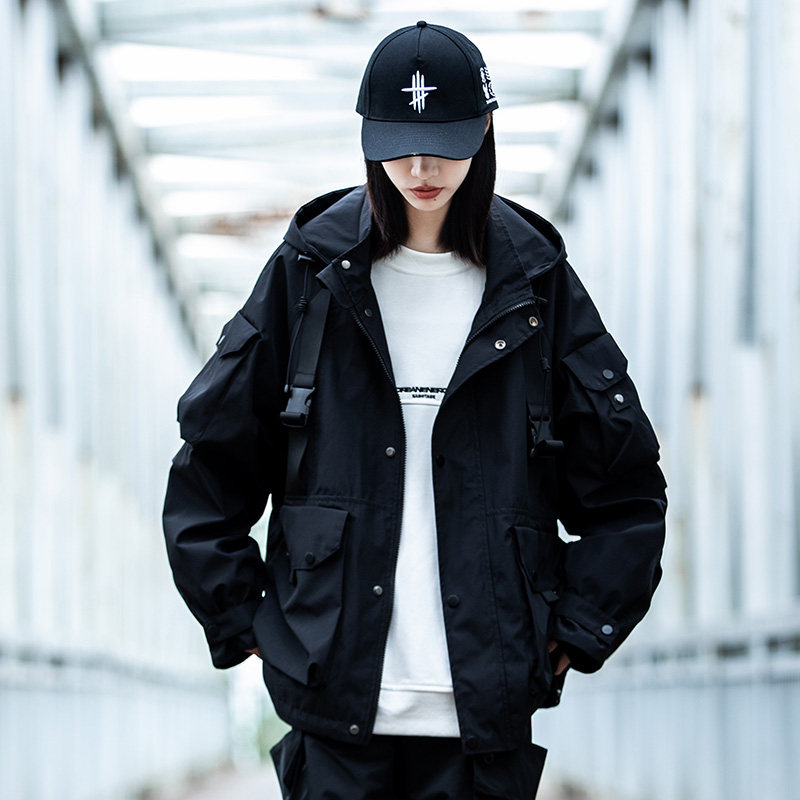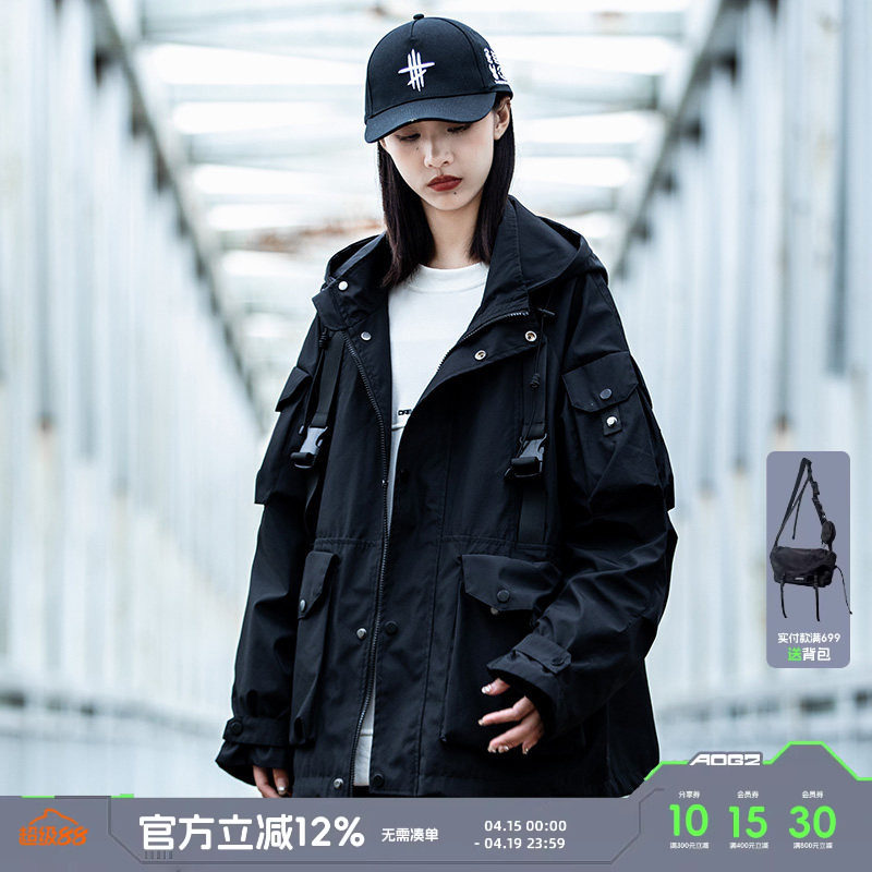 AOGZ国潮牌伞兵工装外套男女春秋新款连帽夹克机能风情侣冲锋上衣