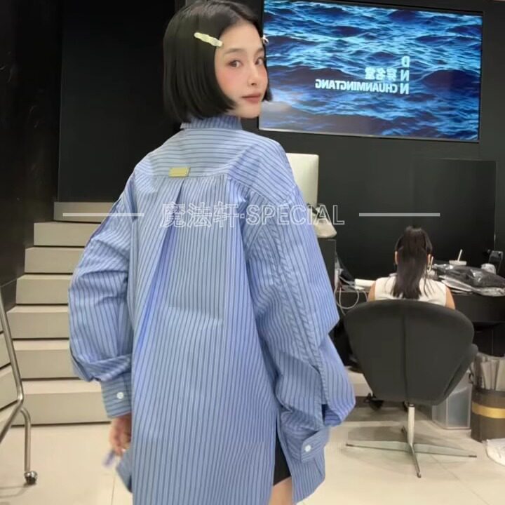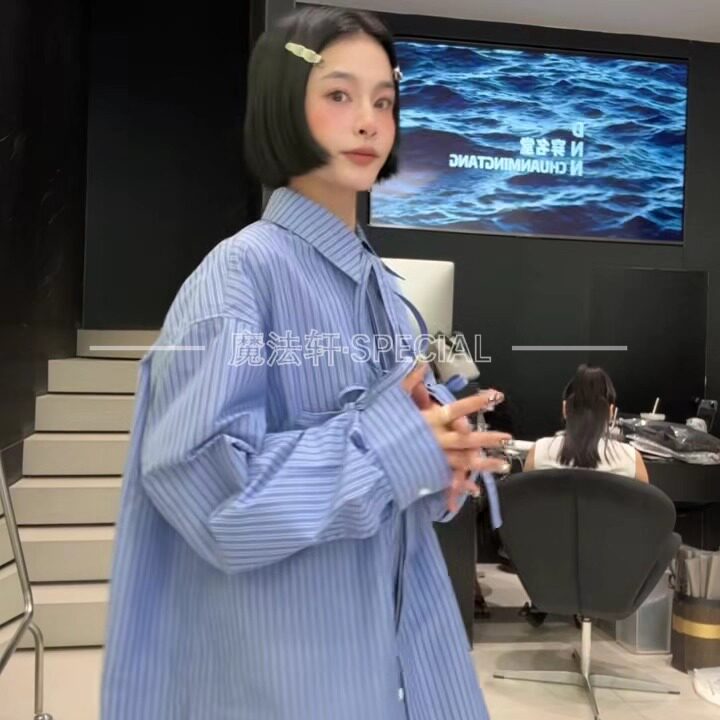 --------------------- 【现货】条纹衬衫女长袖2025新款翻领蝴蝶结中长款宽松欧货上衣q 【原售价】259元 【现售价】227元 【推荐理由】