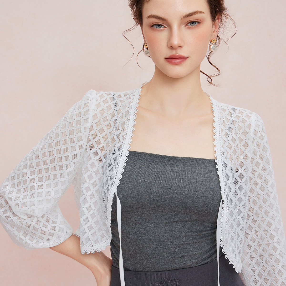 斯尔丽25夏季新款蕾丝外搭披肩小衫高级感宽松百搭开衫空调衫外披
