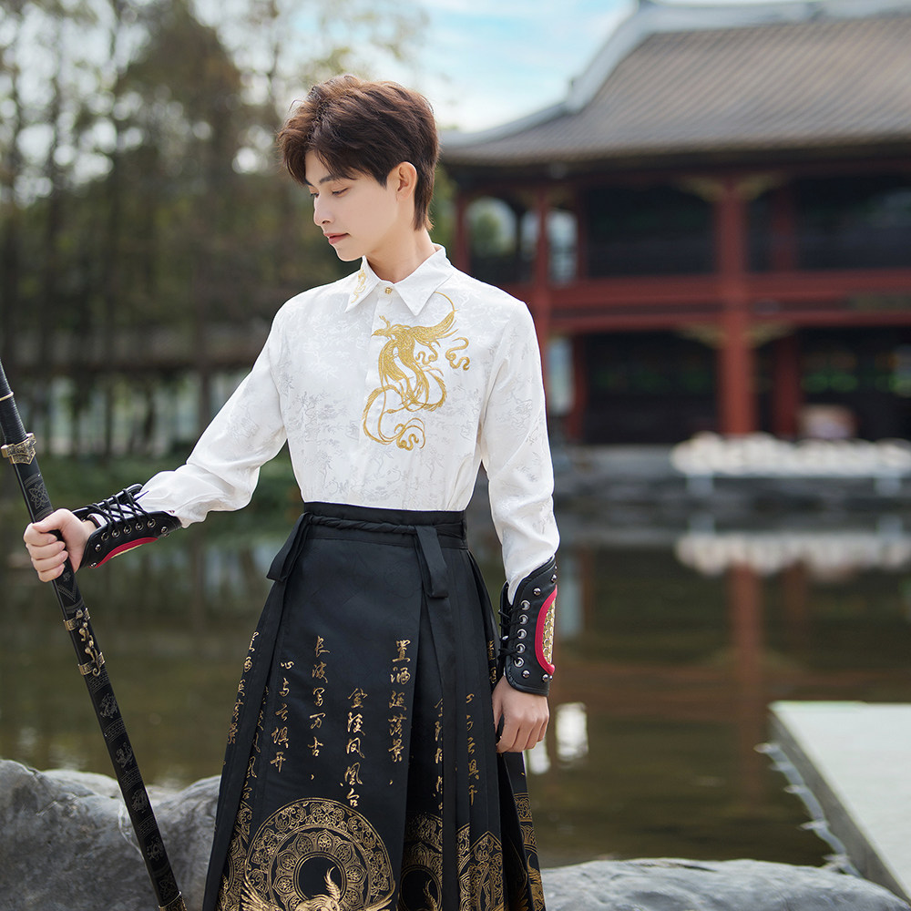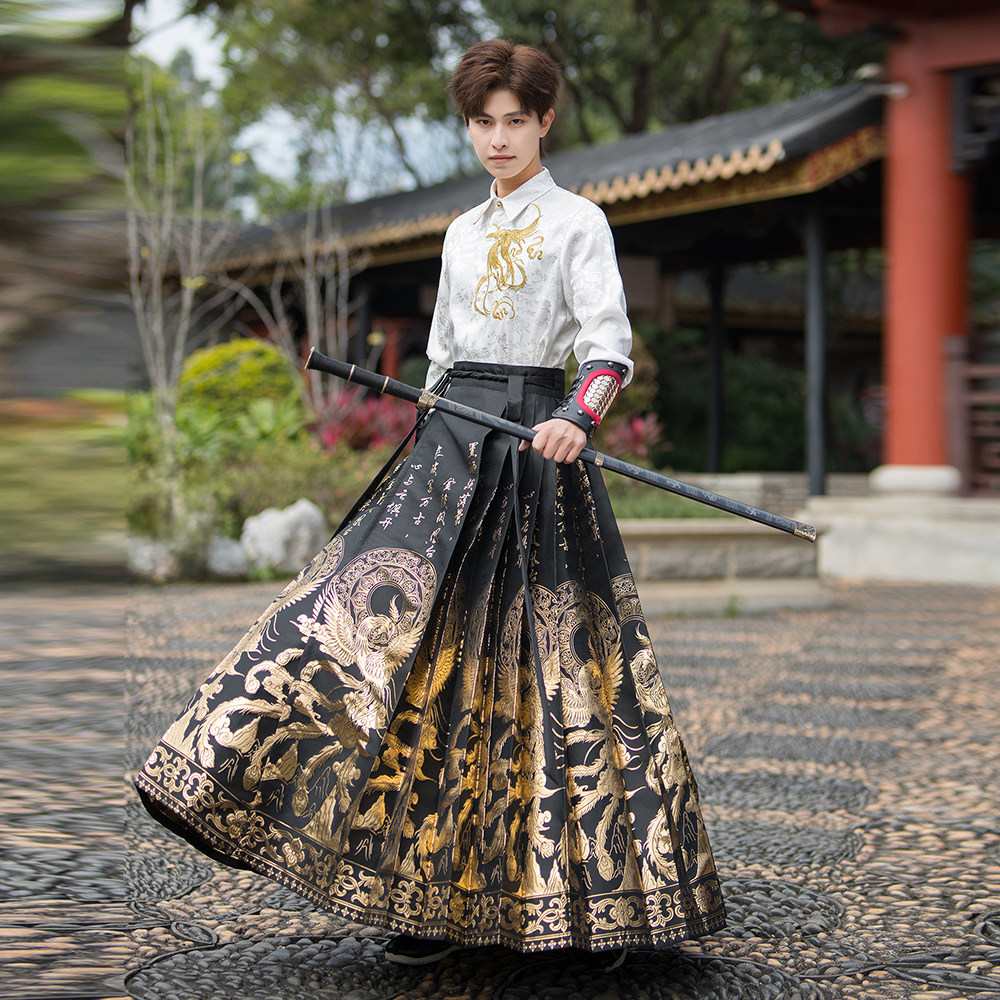 --------------------- 马面服男生唐装国风汉服男士成人新中式男装刺绣织金马面裙全套装 【原售价】139元 【现售价】210元 【推荐理由】