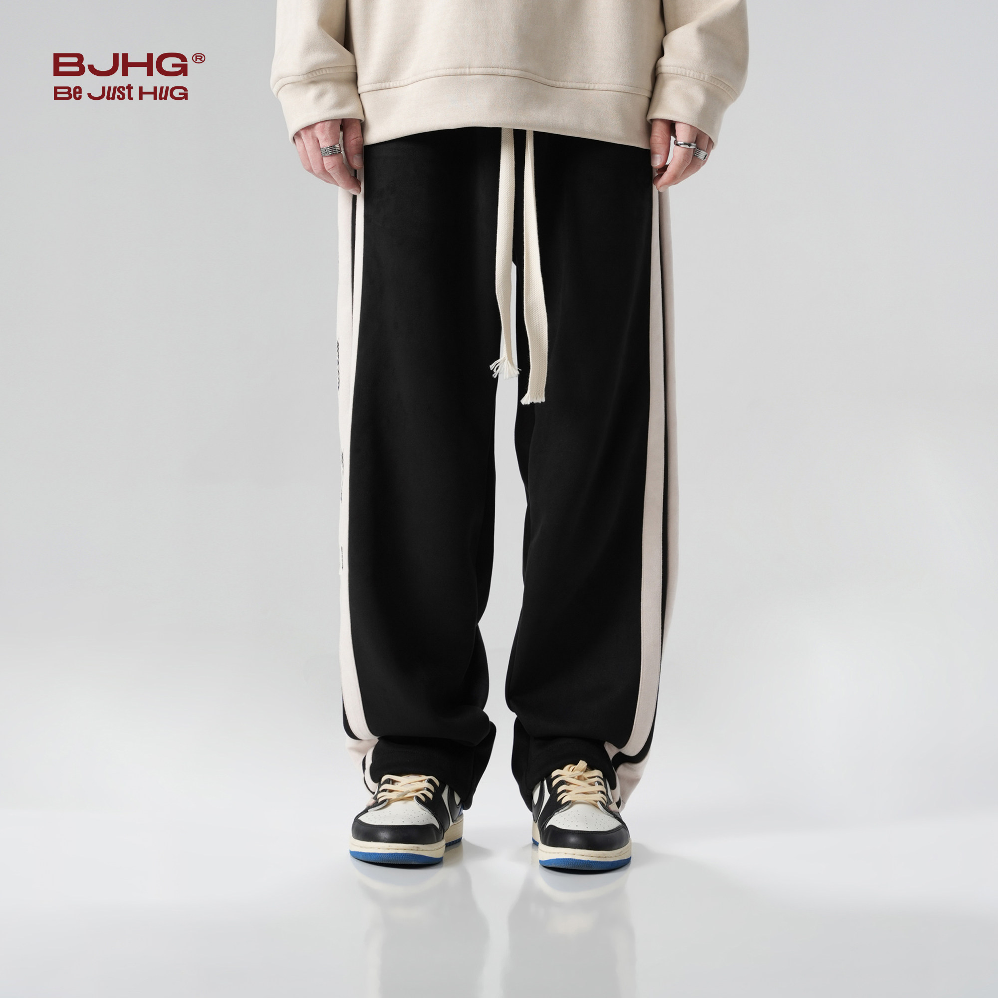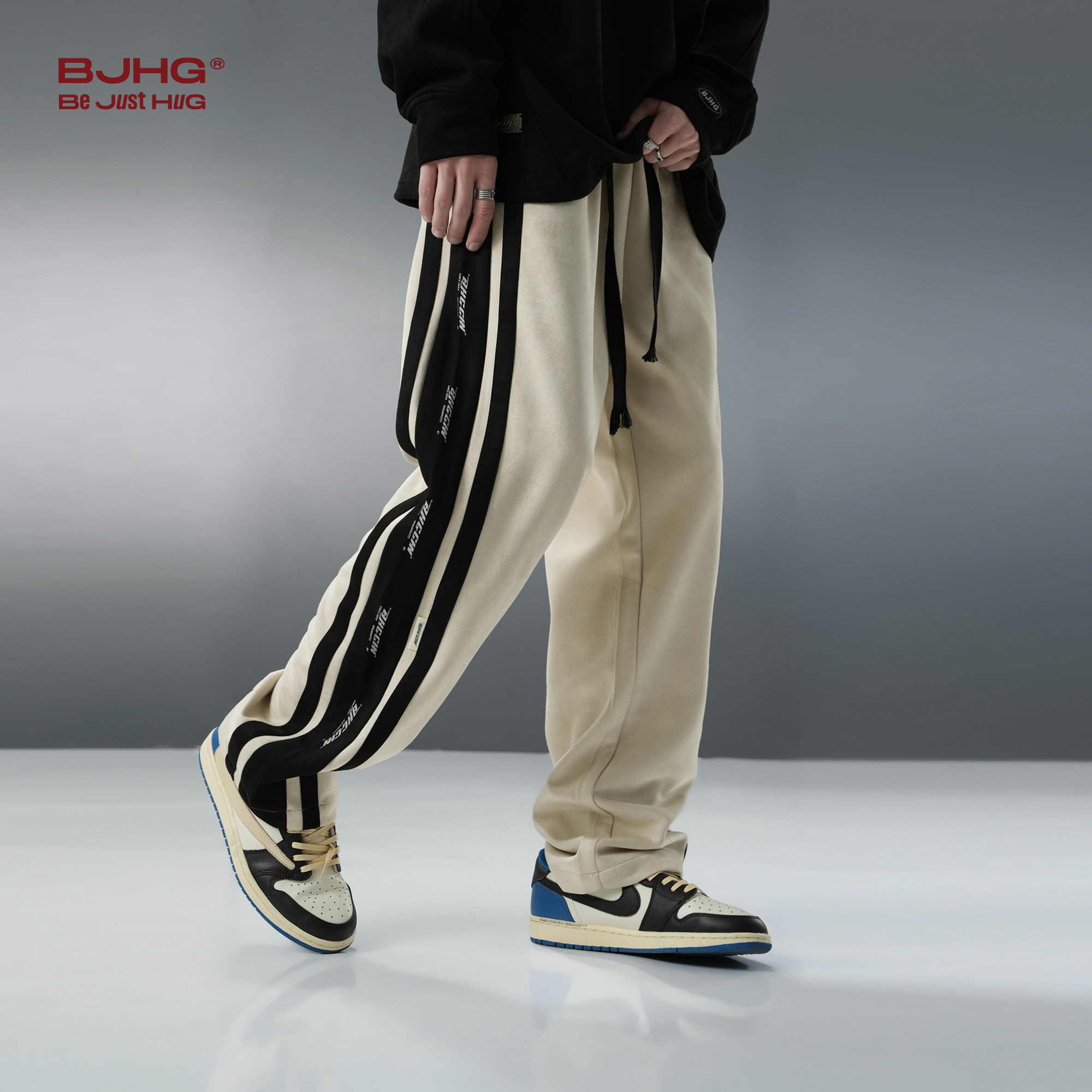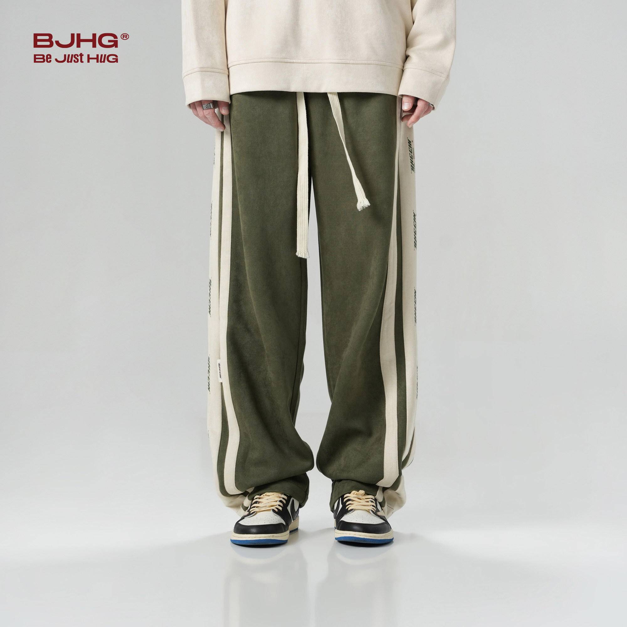 BJHG不计后果美式仿麂皮绒休闲裤子男款冬季潮牌宽松直筒百搭卫裤