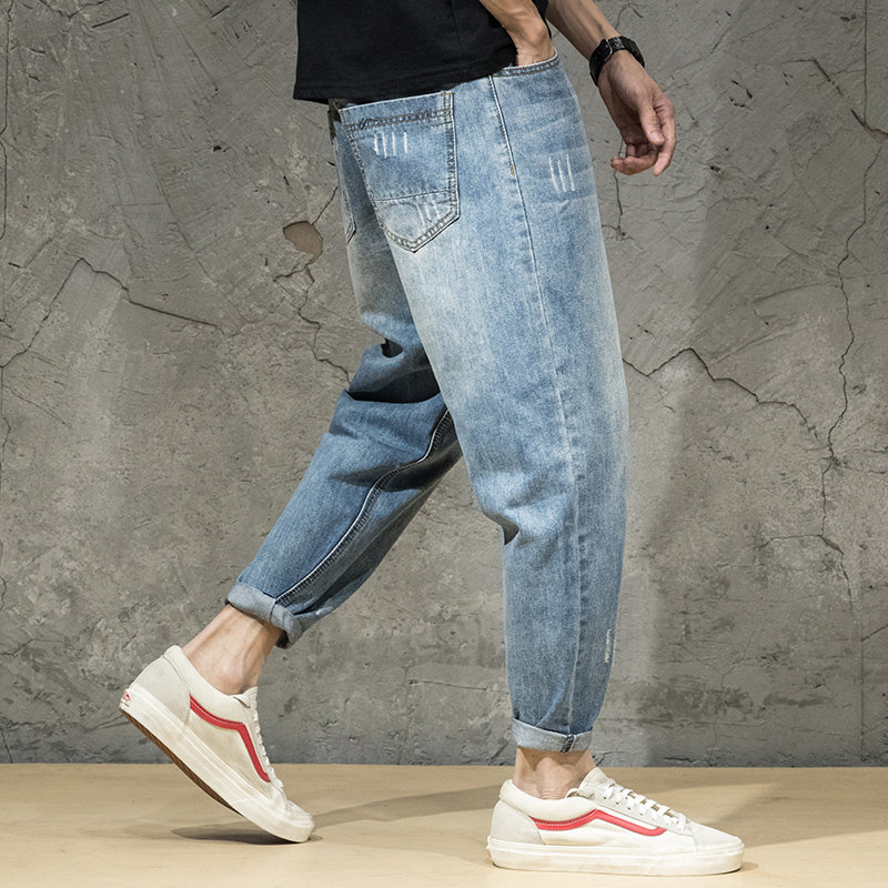 秋季天丝莱赛尔新款直筒休闲牛仔裤男加大宽松大码春秋哈伦裤子潮