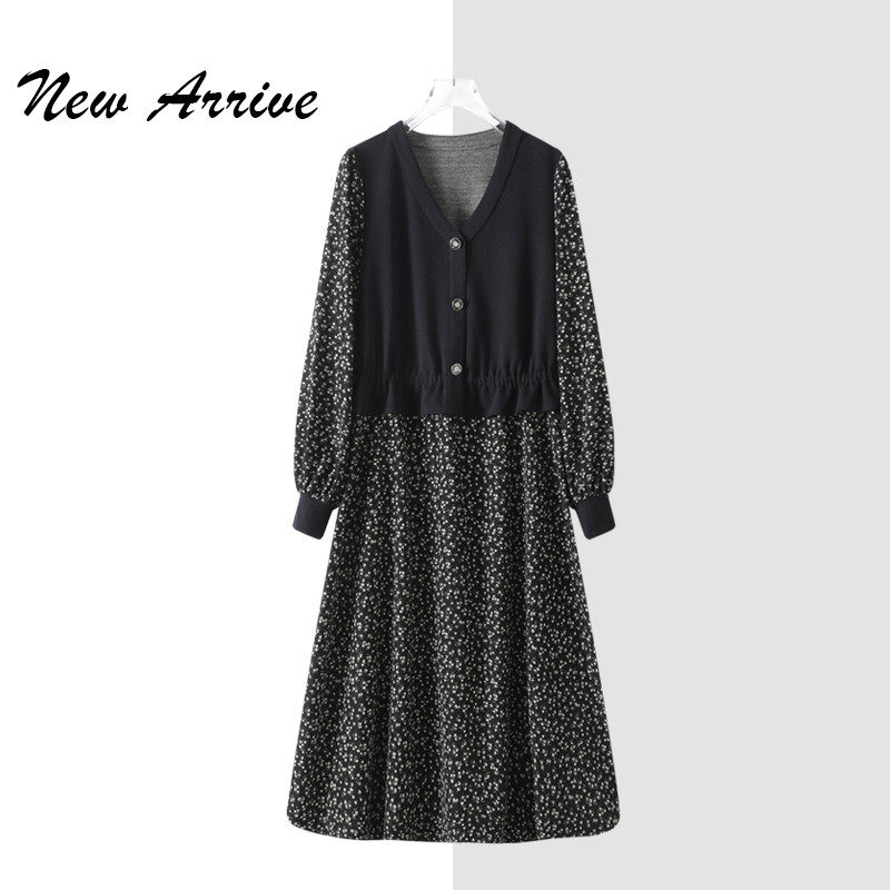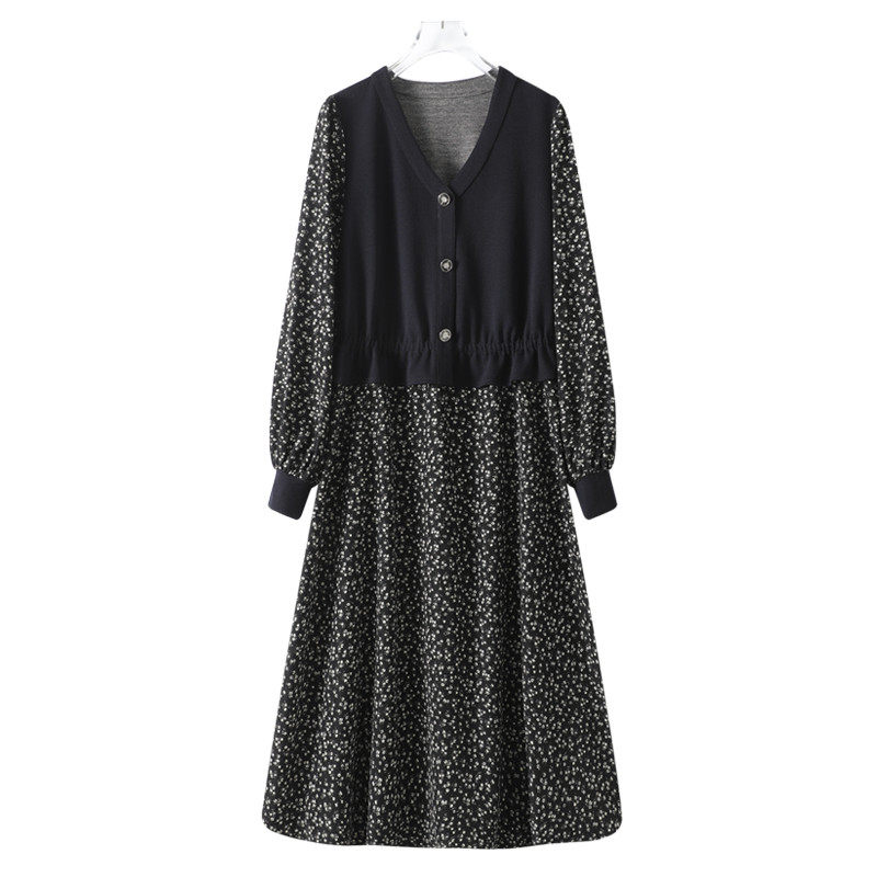--------------------- M2折扣店春秋新款宽松大码收腰微胖中年妈妈V领长袖连衣裙 【原售价】110元 【现售价】96元 【推荐理由】