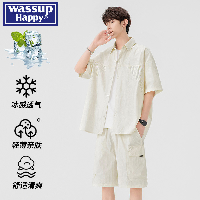 --------------------- wassup happy冰丝透气短袖衬衫短裤套装男士夏季肌理感潮牌两件套 【原售价】239元 【现售价】174元 【推荐理由】