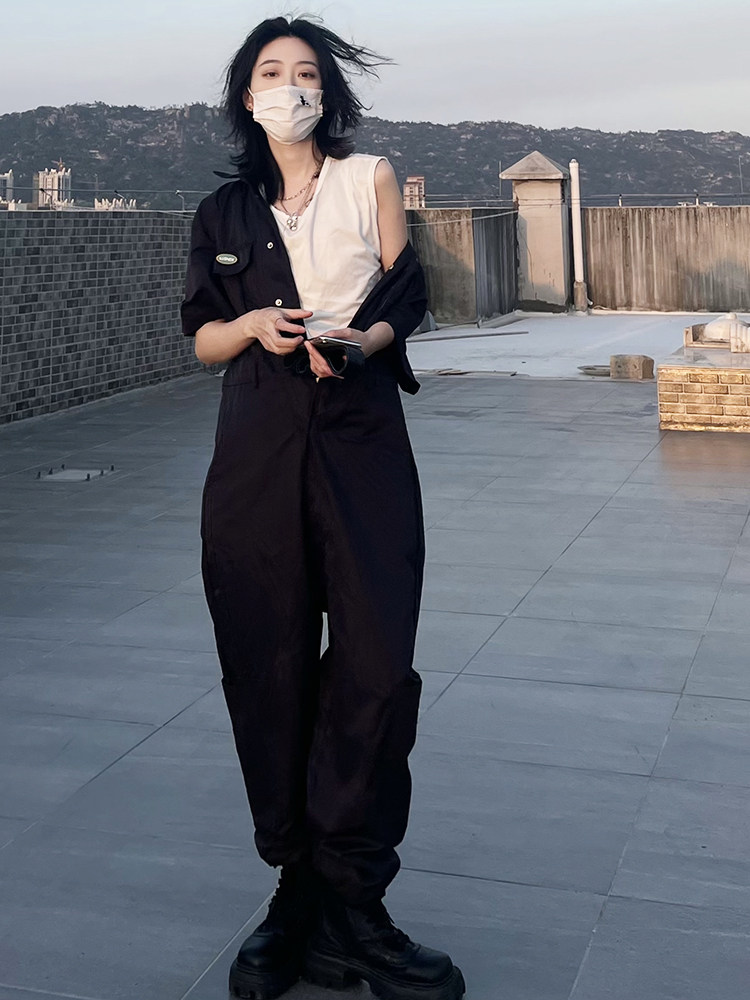 临典连体工装背带裤男2025新款美式慵懒风酷飒一体式连衣裤套装女