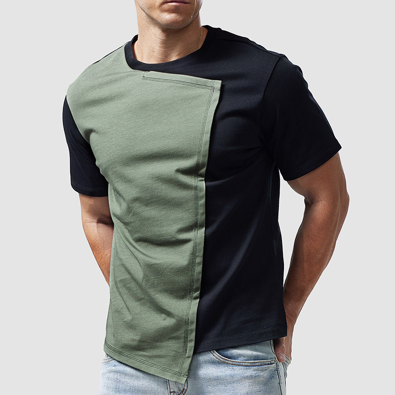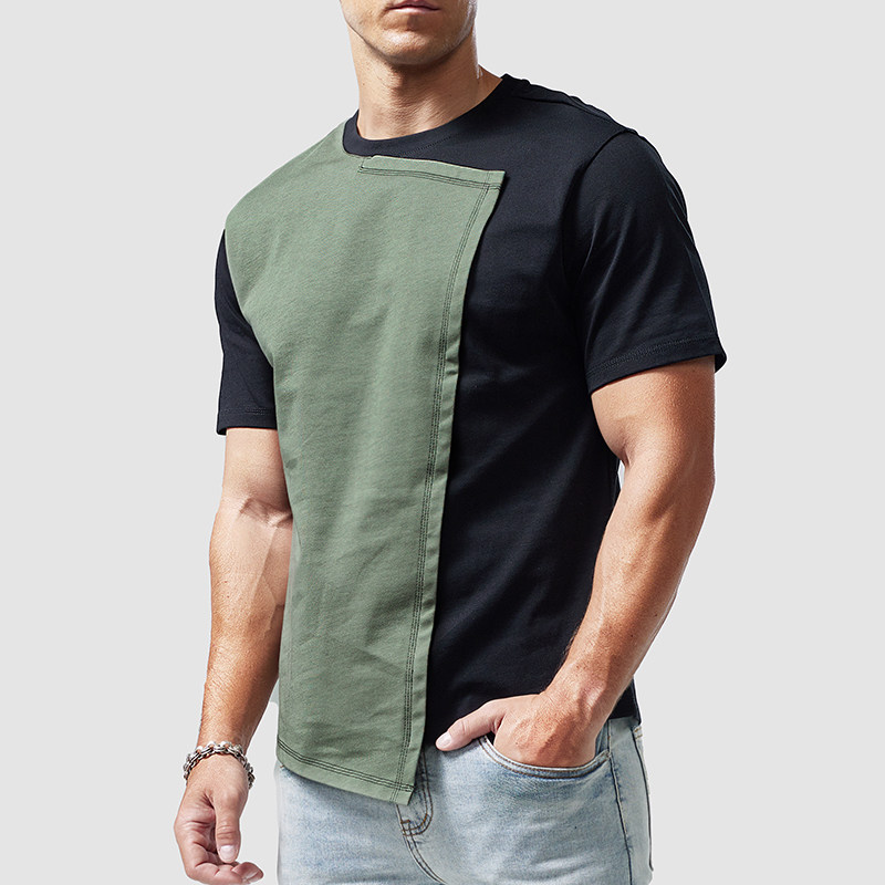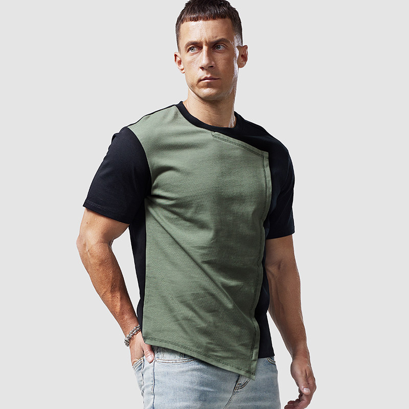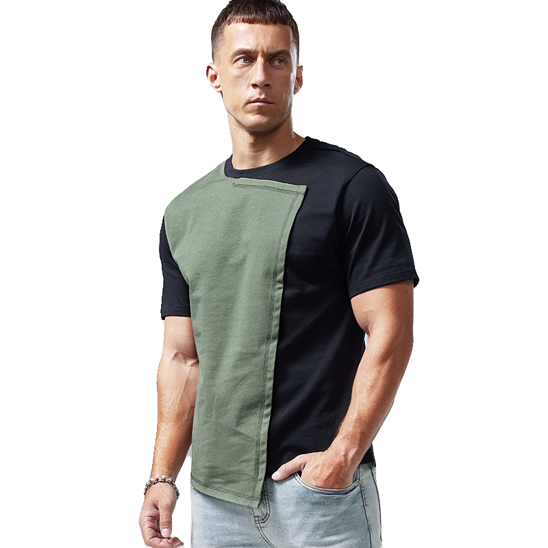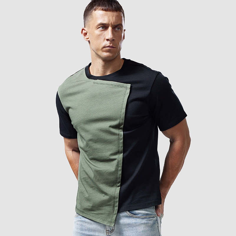 国潮中国风短袖T恤男撞色拼接纯棉半袖打底衫休闲宽松体恤上衣服