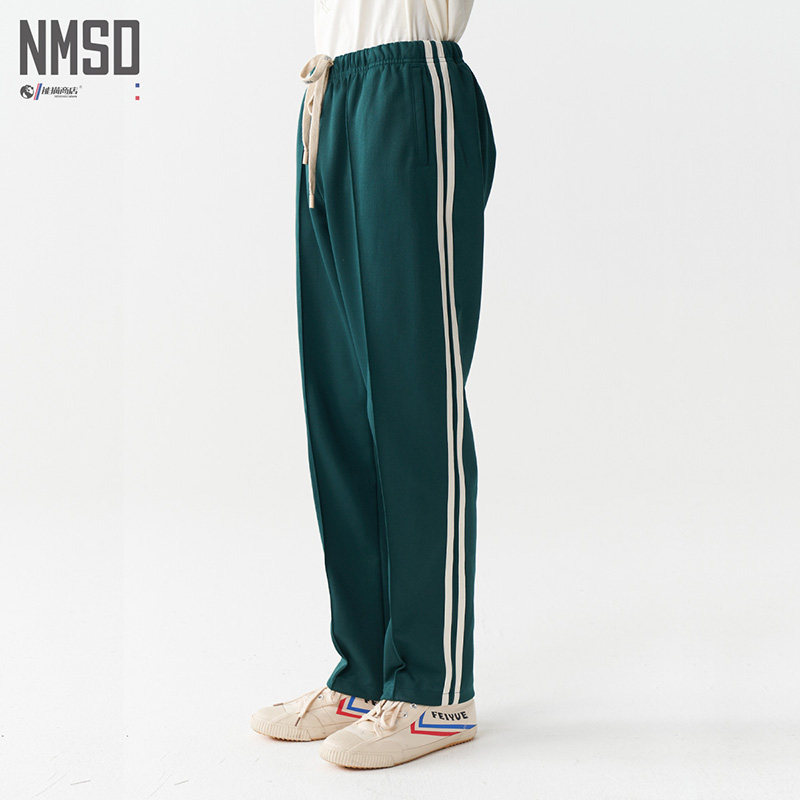 能猫商店设计两杠中国复古宽松运动休闲男女条纹抽绳长裤国潮青春