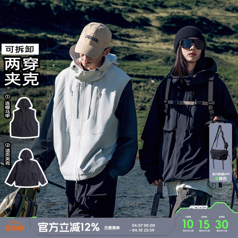 --------------------- AOGZ户外登山冲锋衣夹克男女秋春新款防水可拆卸两穿工装马甲外套 【原售价】499元 【现售价】399元 【推荐理由】