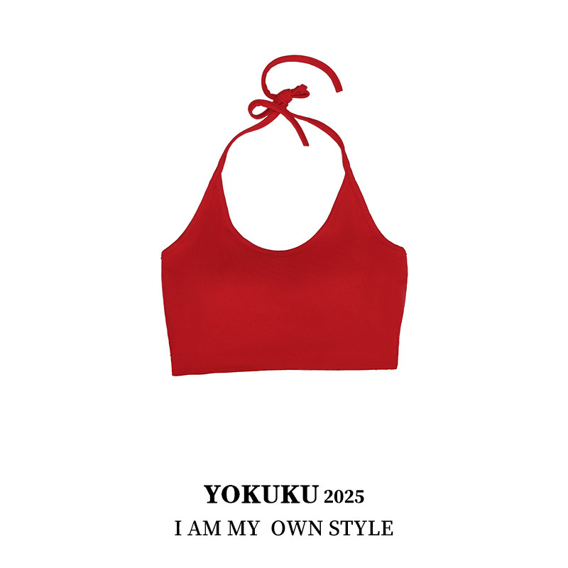 哟酷酷(我本多彩)纯色基础百搭吊带背心女系带美背上衣女带胸垫
