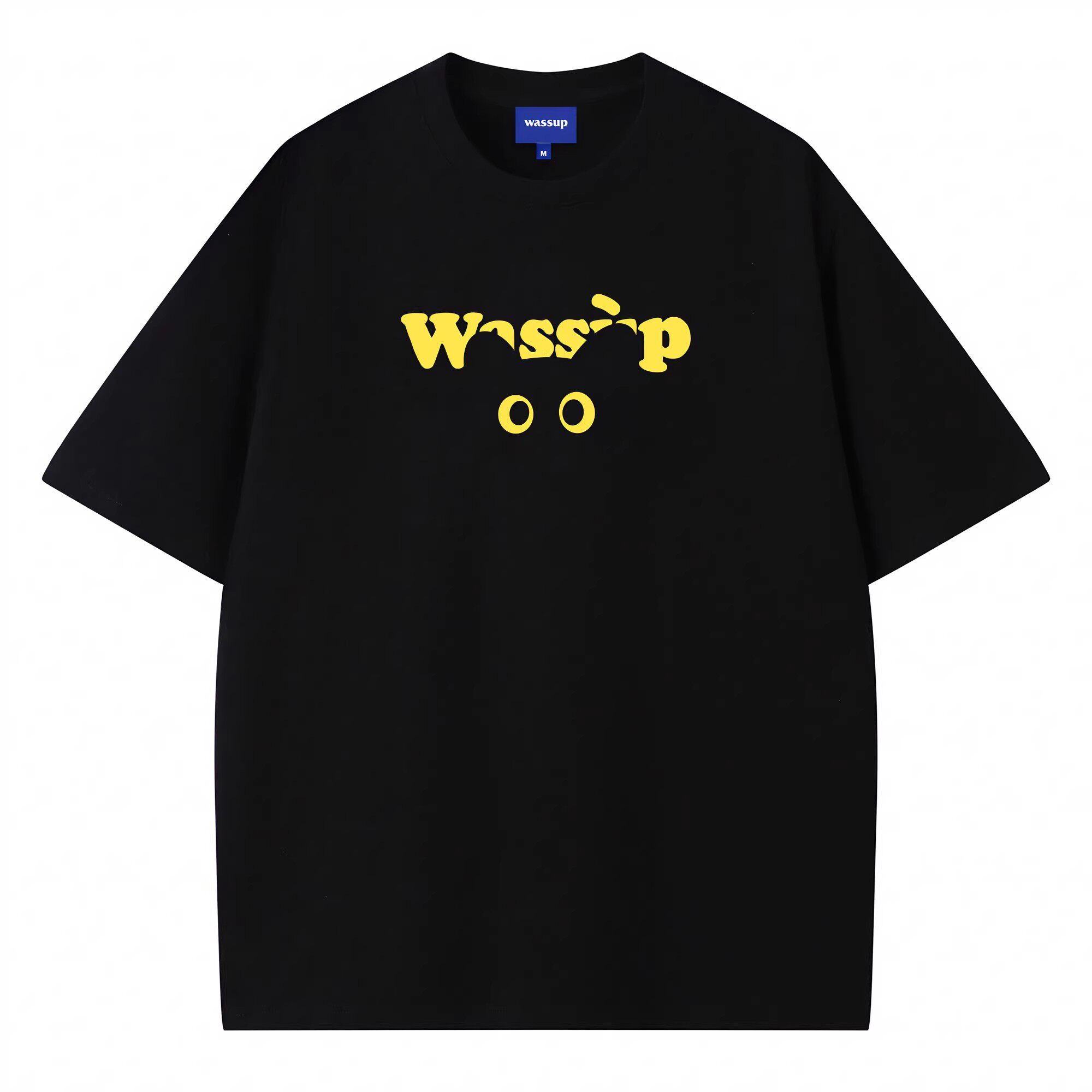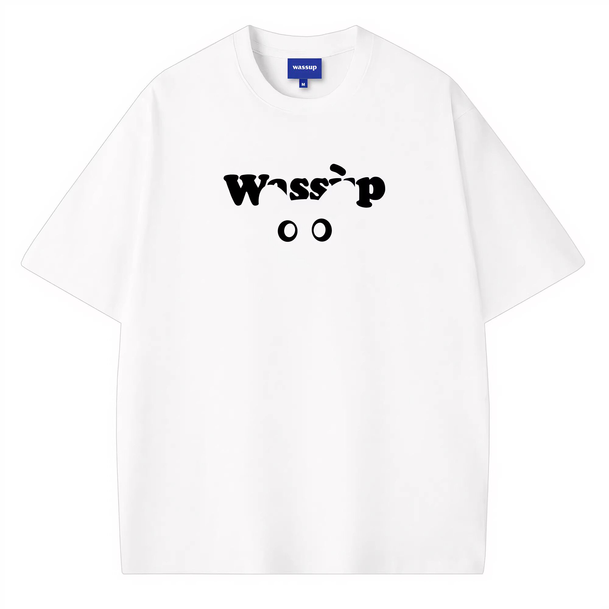 WASSUP国潮猫咪眼睛短袖男女夏季美式潮牌复古重磅纯棉情侣T恤