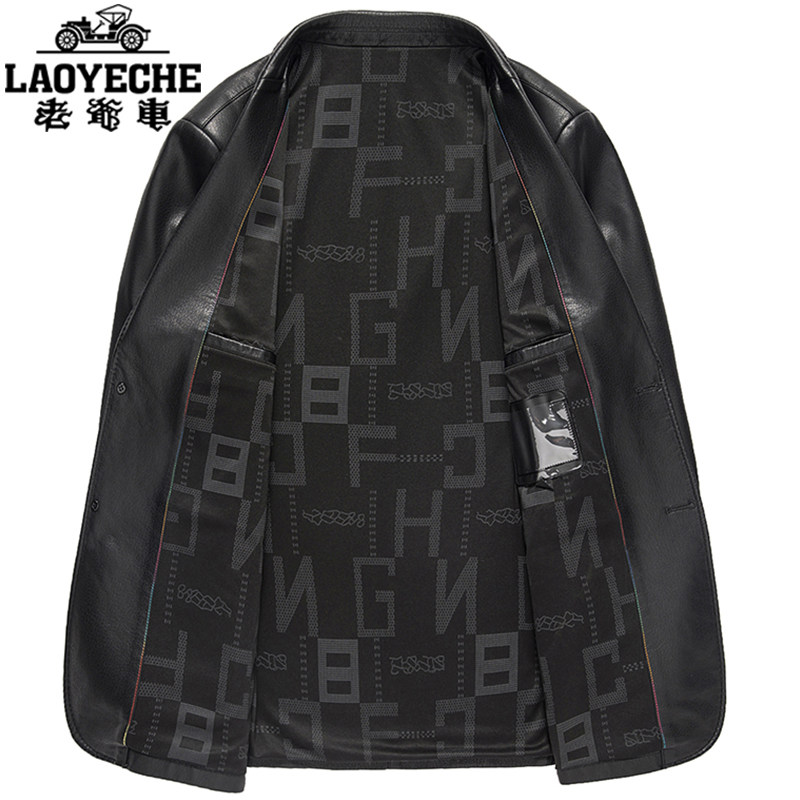 老爷车春秋新款海宁真皮皮衣男高档薄款牛皮西服商务休闲软皮外套