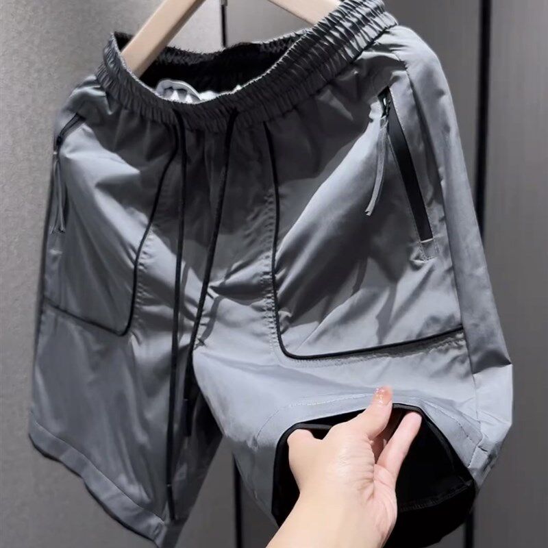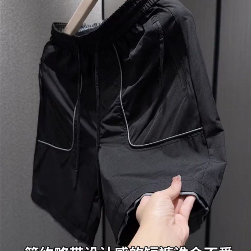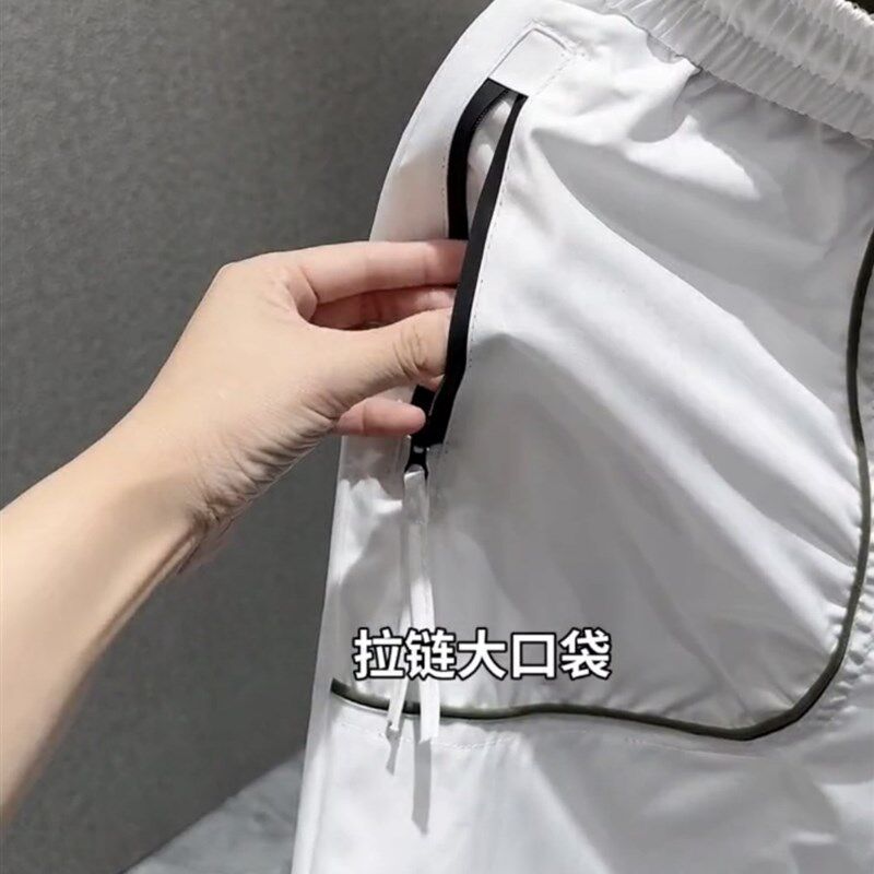 夏季男士新款冰丝速干拉链口袋五分裤时尚百搭宽松透气运动短裤男