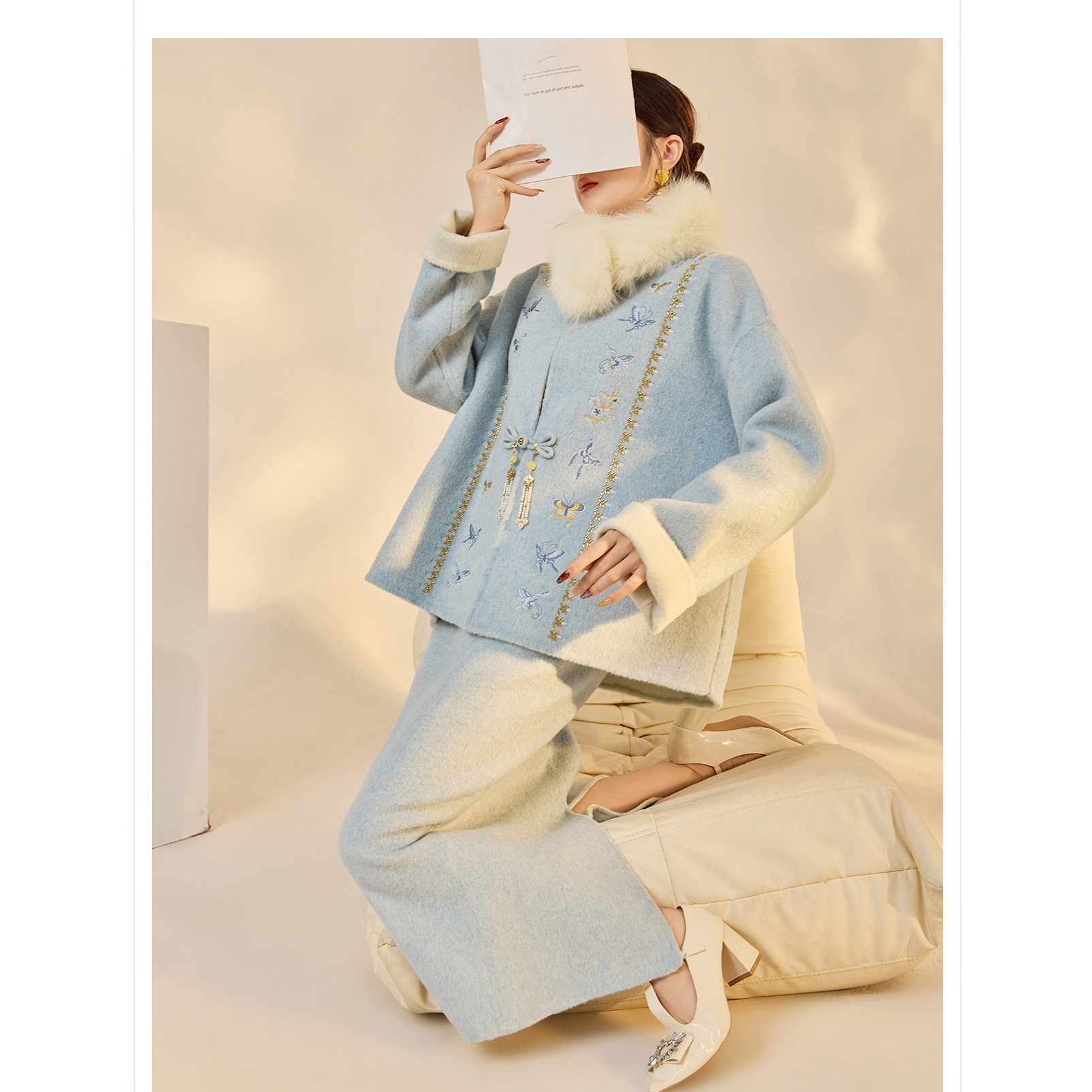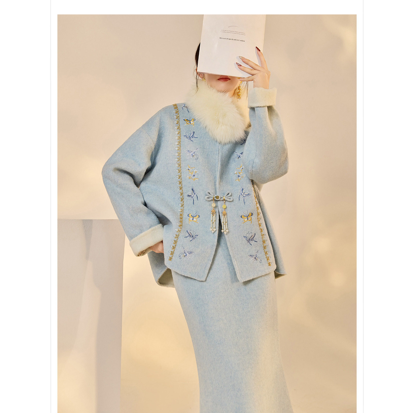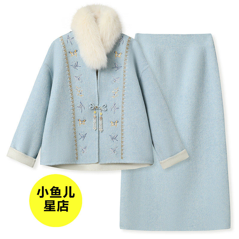 --------------------- 高端版冬季复古国风古韵设计感盘扣新款毛呢羊毛外套半裙两件套女 【原售价】255元 【现售价】245元 【推荐理由】
