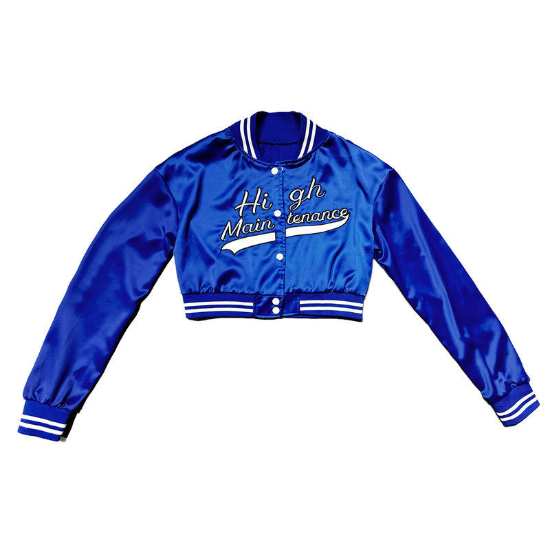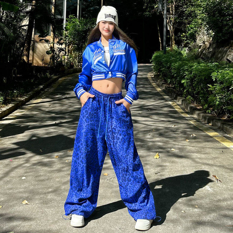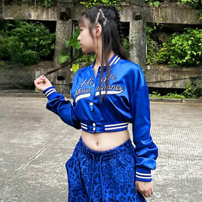 蓝色刺绣夹克外套女短款爵士跳舞上衣显瘦穿搭街舞kpop舞蹈演出服