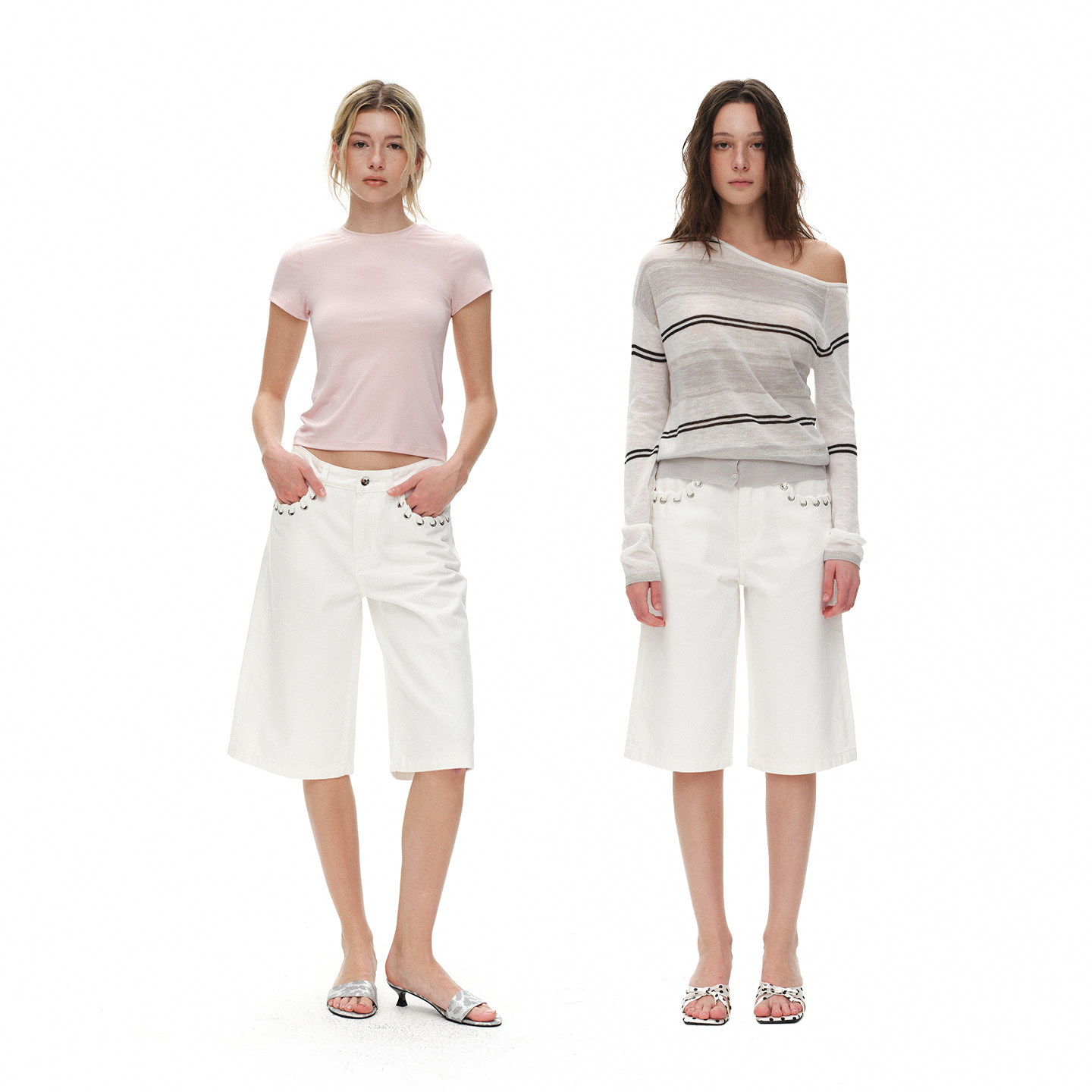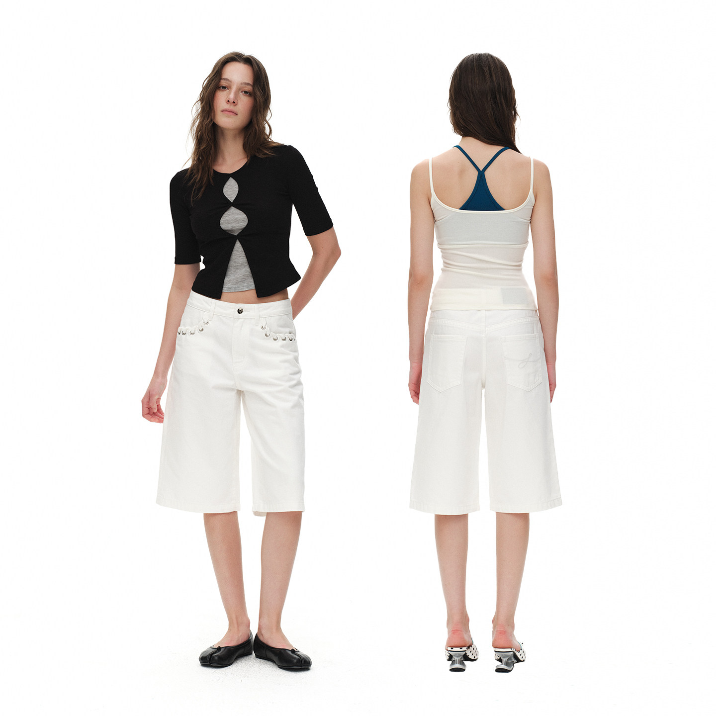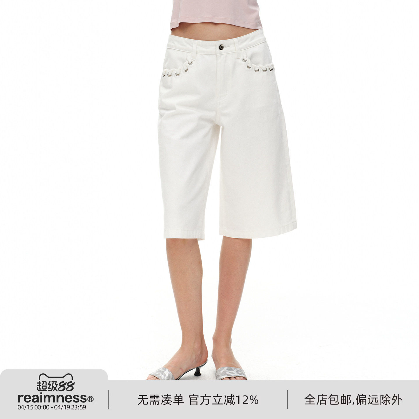 --------------------- ReAimNess*口袋绑带设计白色中裤百搭宽松直筒白色牛仔裤七分裤女 【原售价】299元 【现售价】263元 【推荐理由】
