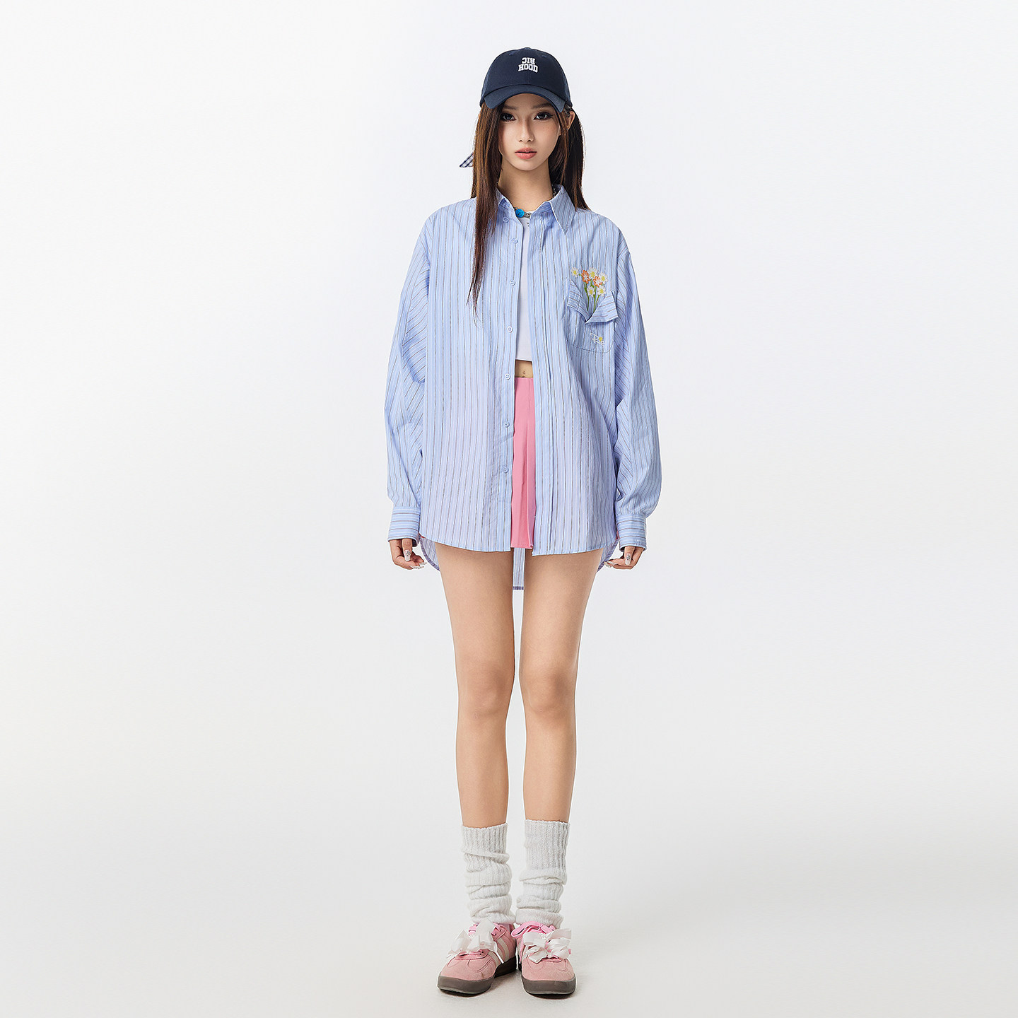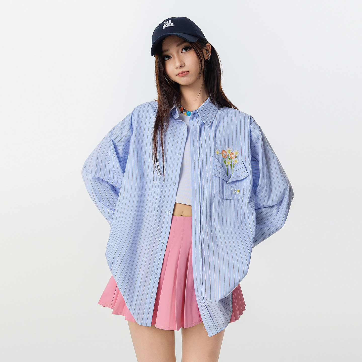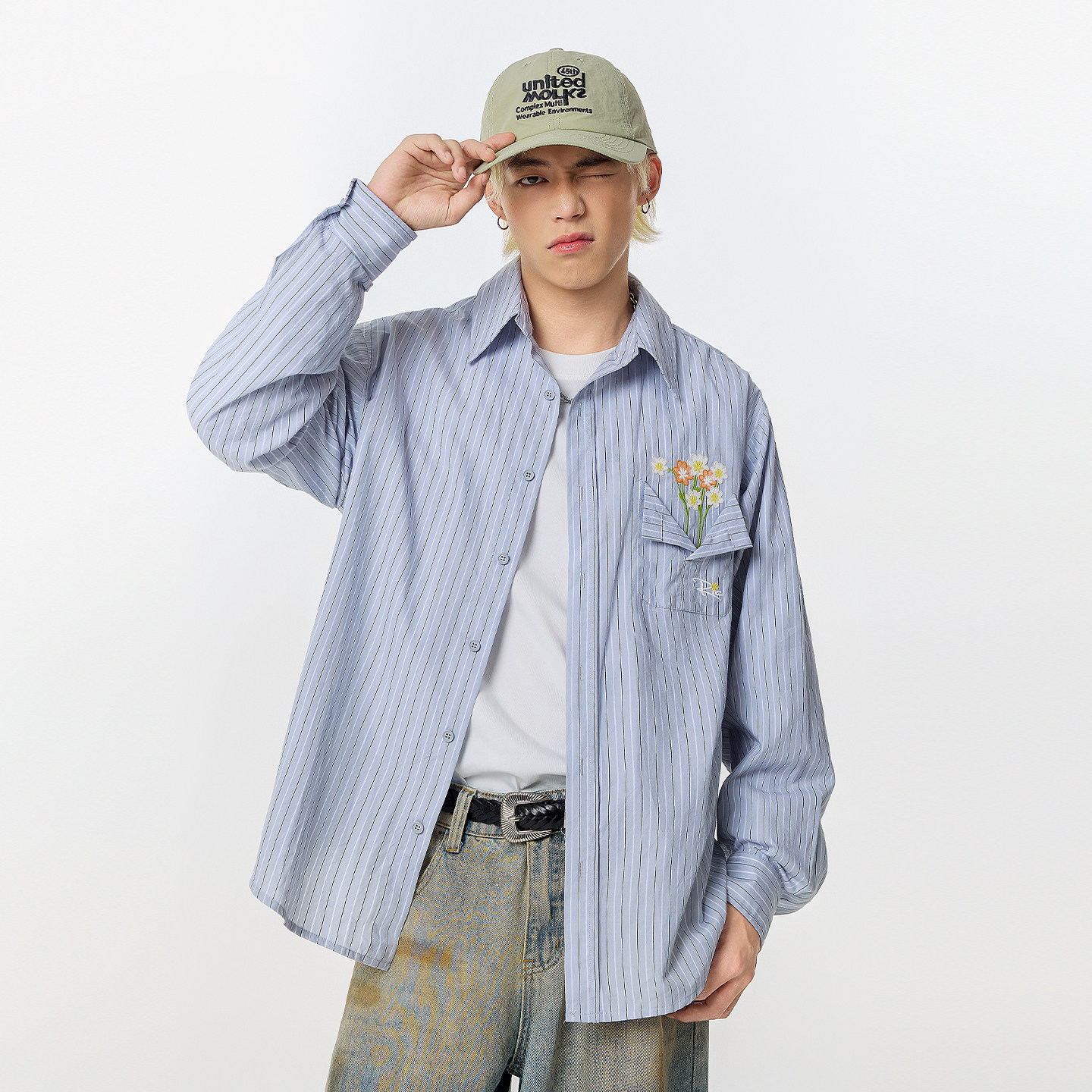「云旗同款」RickyisClown口袋花瓶条纹衬衫长袖潮衬衣外套男女