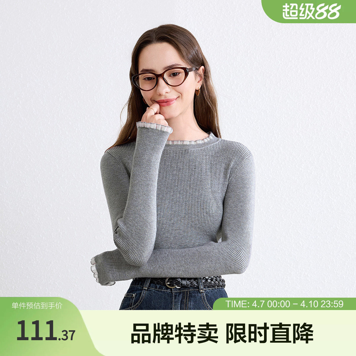--------------------- betu百图立领打底衫款透明纱拼接小立领打底衫百搭纯色针织衫 【原售价】370元 【现售价】110元 【推荐理由】