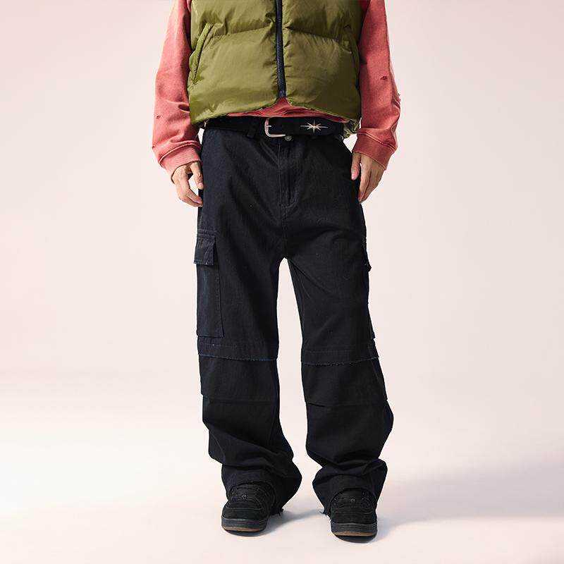 Remedy秋冬新款国潮磨破宽松直筒休闲长裤美式街头阔腿工装裤男女