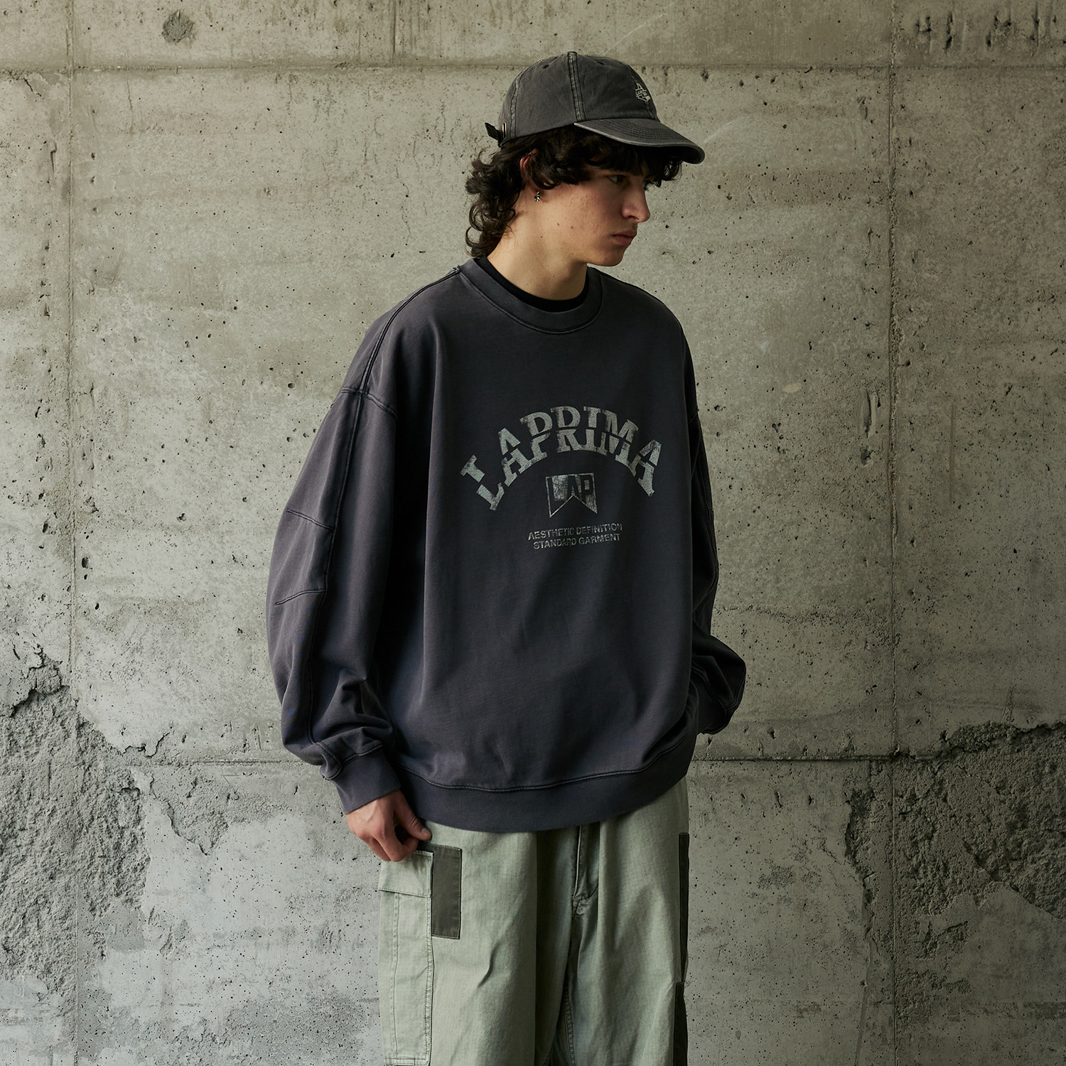 LAPRIMAPRINTED CREW NECK HOODIE logo印花圆领套头卫衣宽松上衣