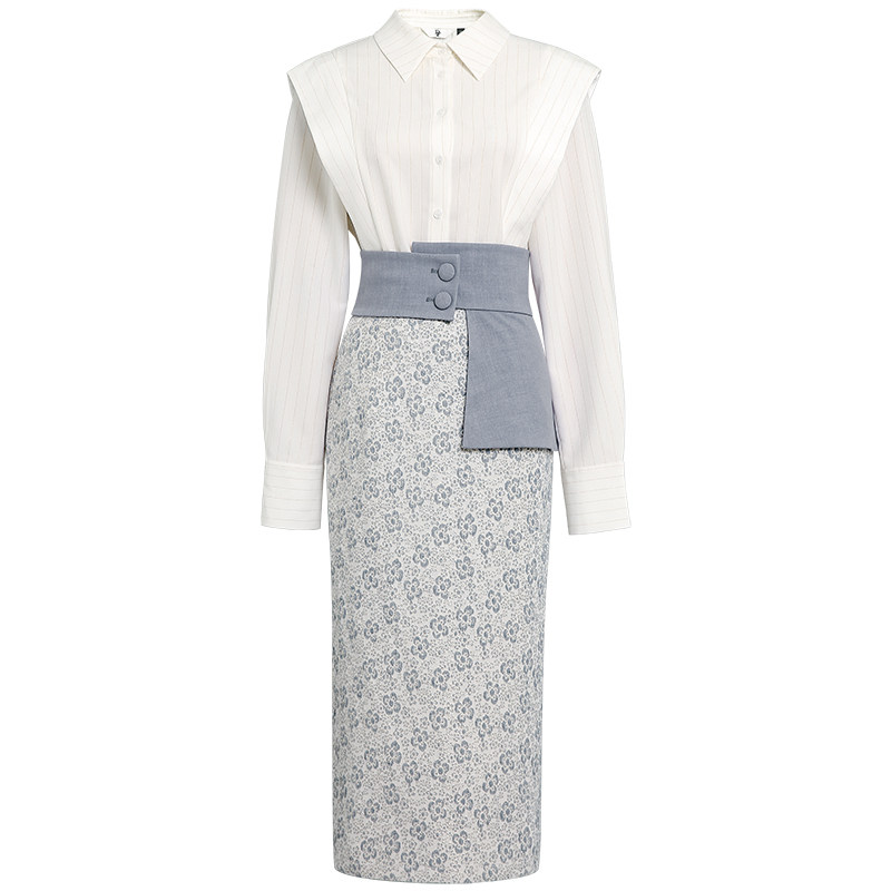 --------------------- 达菲时尚2026春夏新款气质两件套白色衬衫衬衣提花包臀半身裙套装 --------------------- --------------------- 【原价】638元 【券后价】523元
