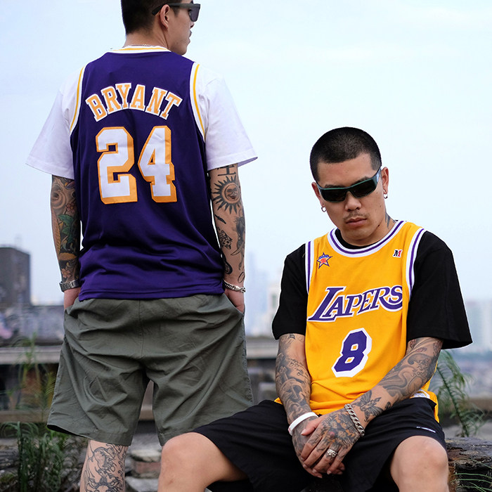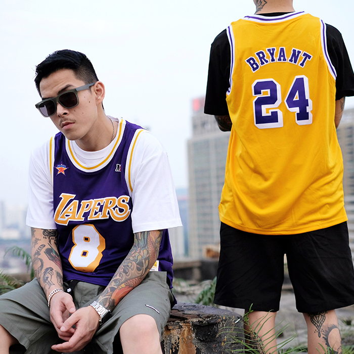 Masterape致敬科比湖人美式复古刺绣球衣8号24号篮球背心紫色nba