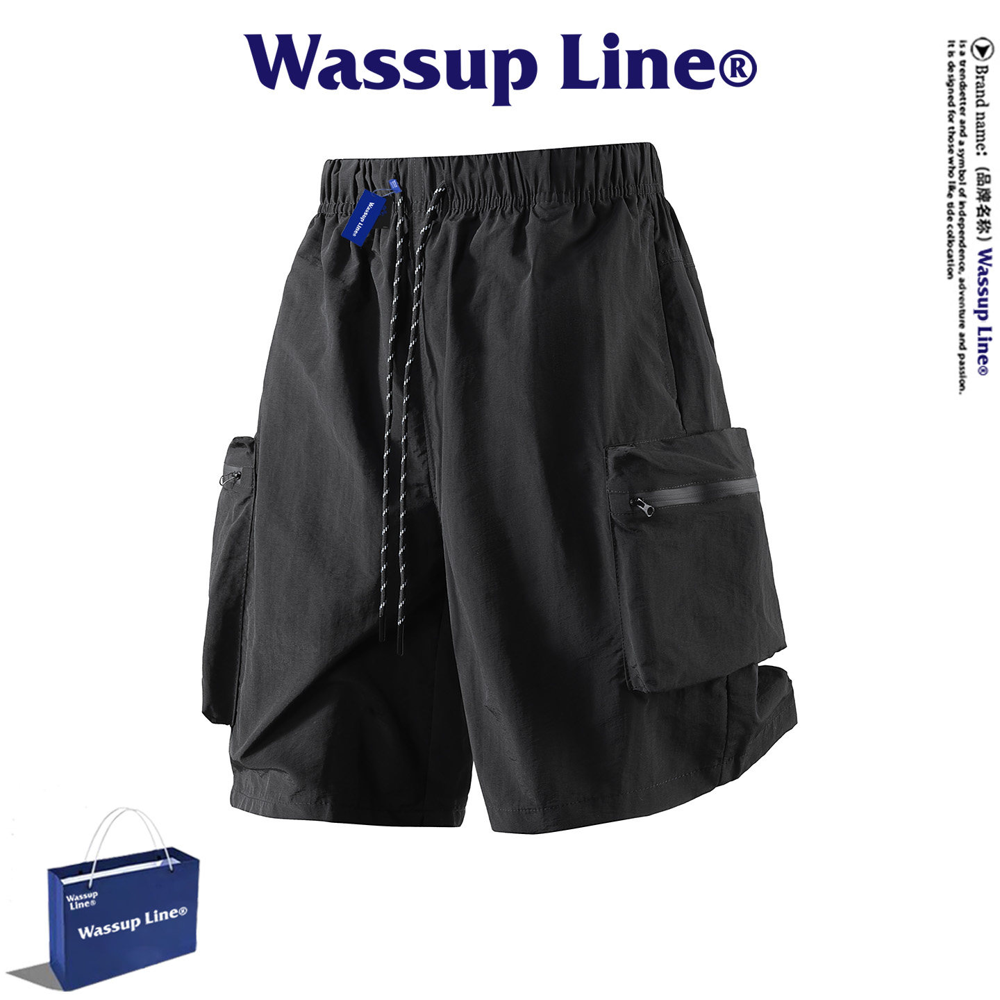 WASSUP Line潮牌休闲五分裤男夏季潮流简约宽松多口袋工装短裤