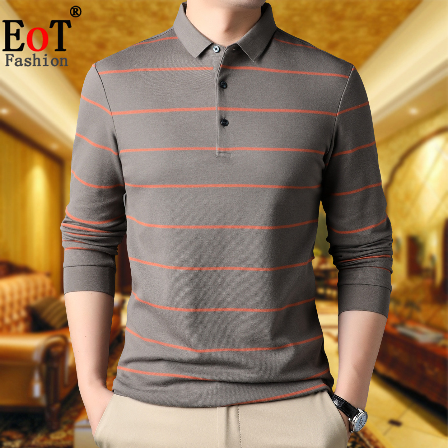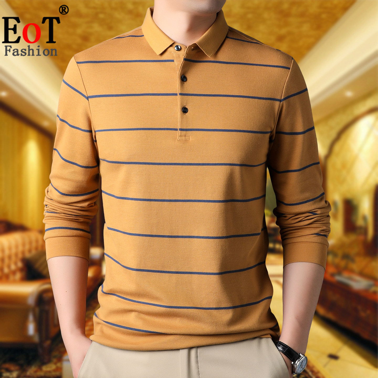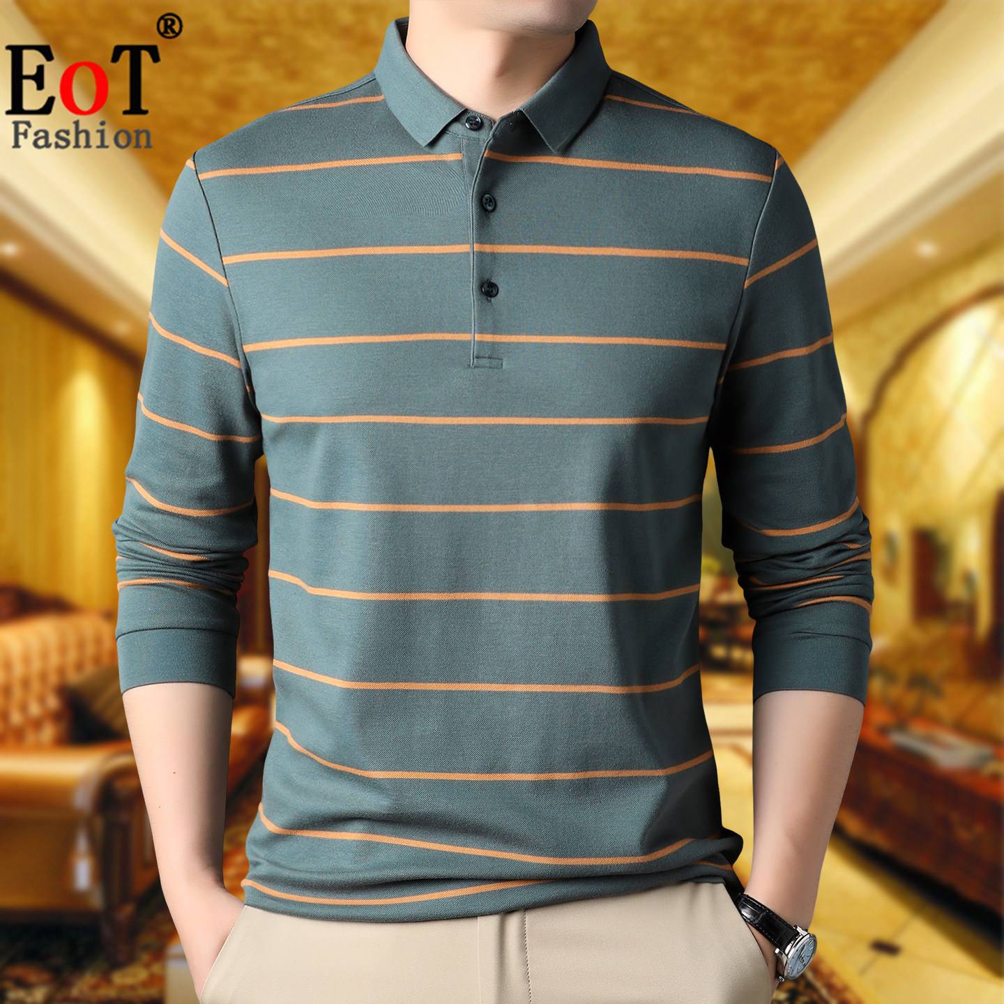 --------------------- 春秋中年男士翻领纯棉长袖T恤宽松休闲条纹爸爸装100%全棉体恤衫 --------------------- --------------------- 【原价】258元 【券后价】88.8元