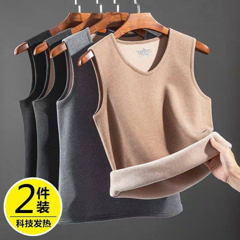 淘宝加绒加厚保暖背心男士内穿秋冬季德绒发热打底棉马甲修身无袖坎肩