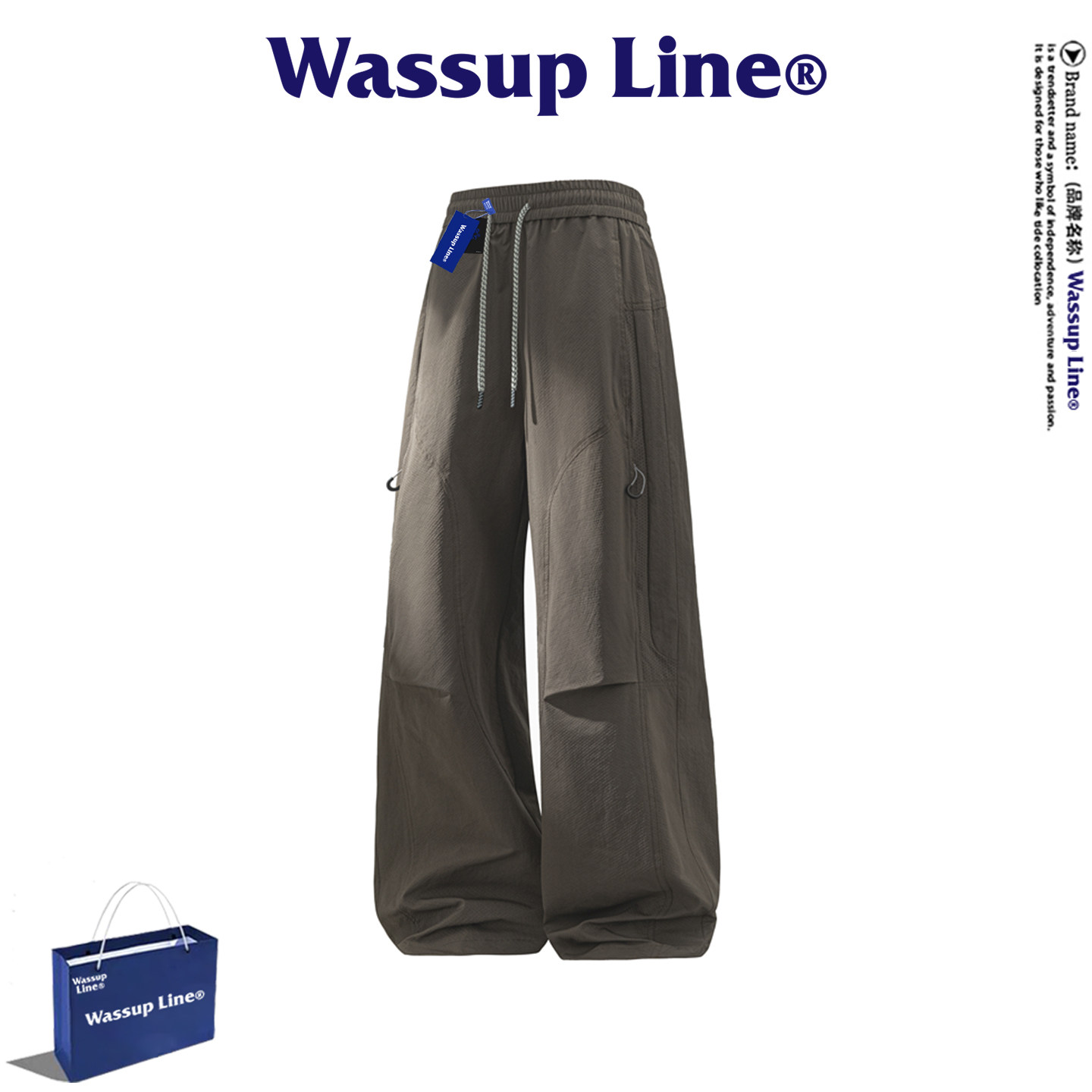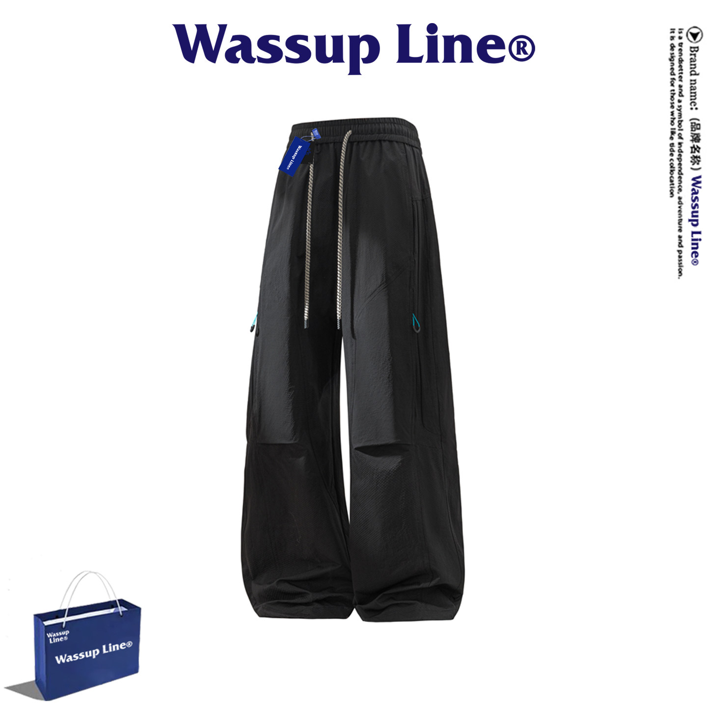 WASSUP Line潮牌时尚休闲裤男春夏季潮流简约百搭直筒裤透气长裤