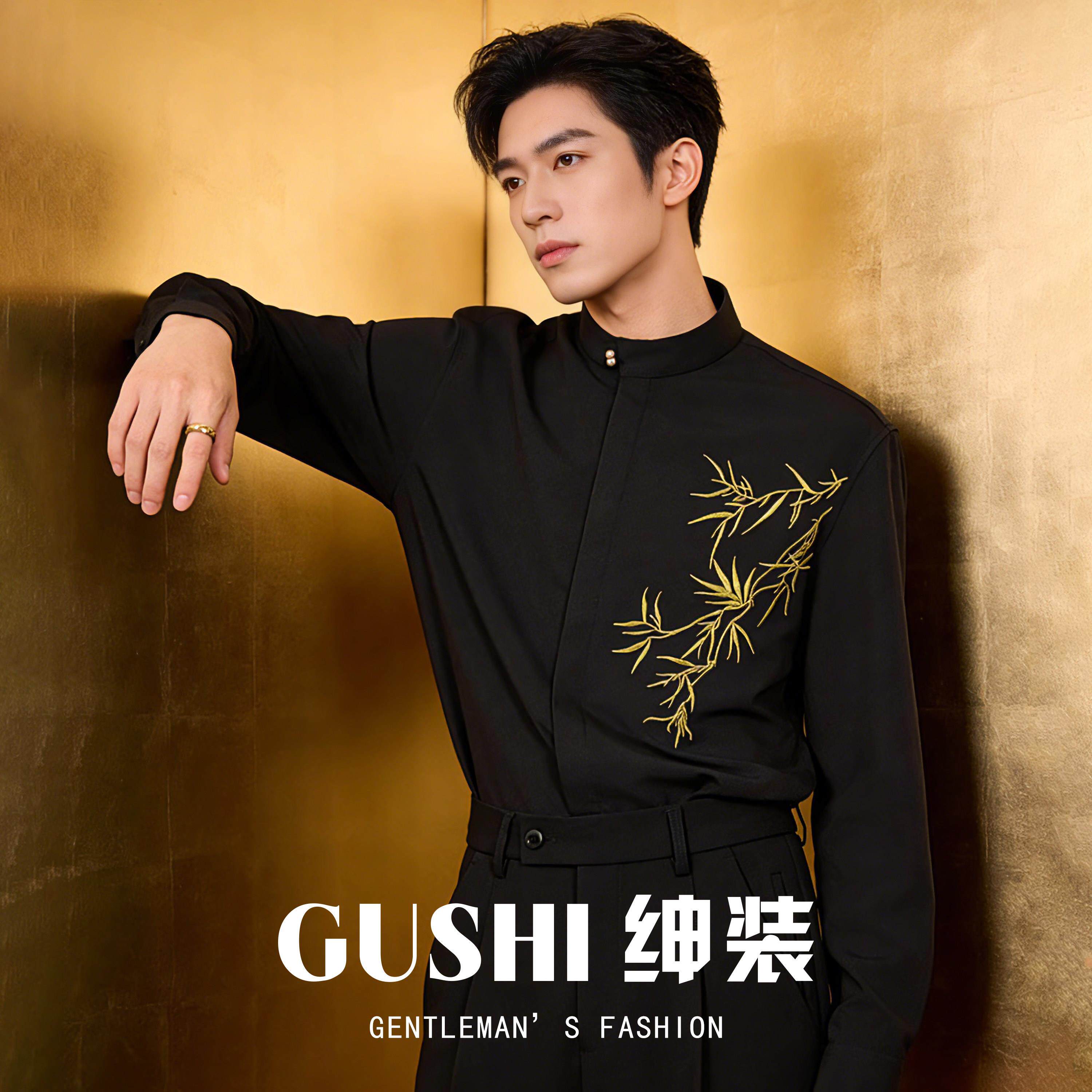 --------------------- 中国风竹枝刺绣立领衬衫男新中式盘扣黑衬衣新郎订婚结婚国潮上衣 【原售价】535元 【现售价】535元 【推荐理由】