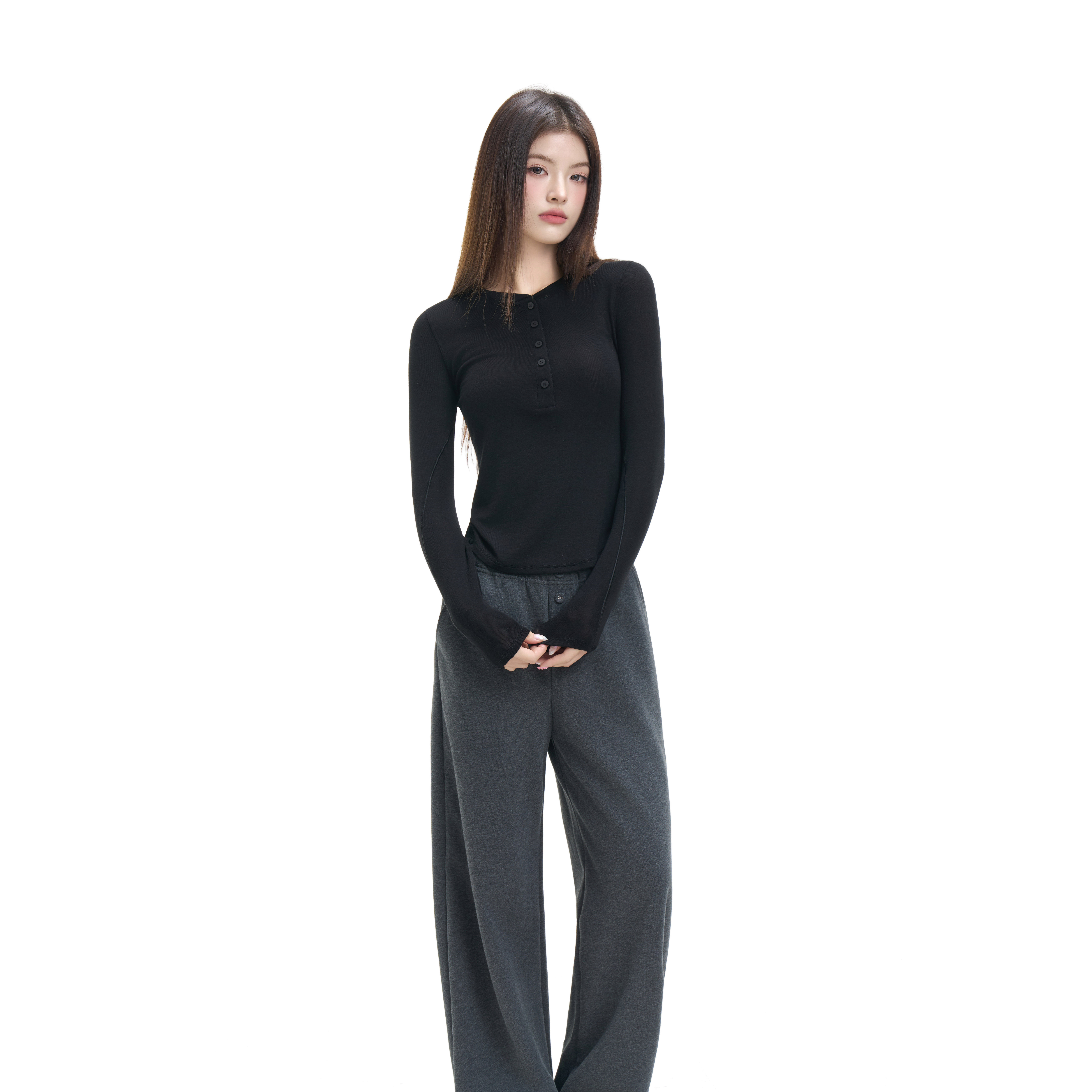 Sdd Anerog兰精莫代尔羊毛亨利领打底衫修身显瘦百搭上衣长袖女