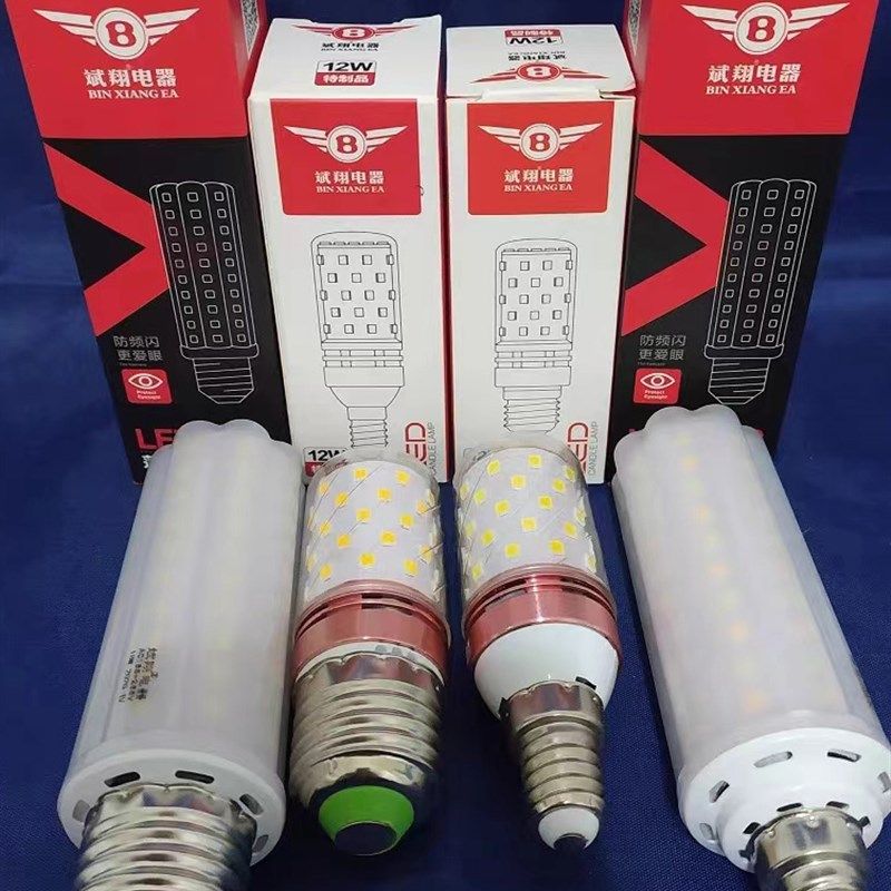 斌翔LED灯泡E14小螺口E27玉米灯家用超亮吊灯光源三色变光节能灯