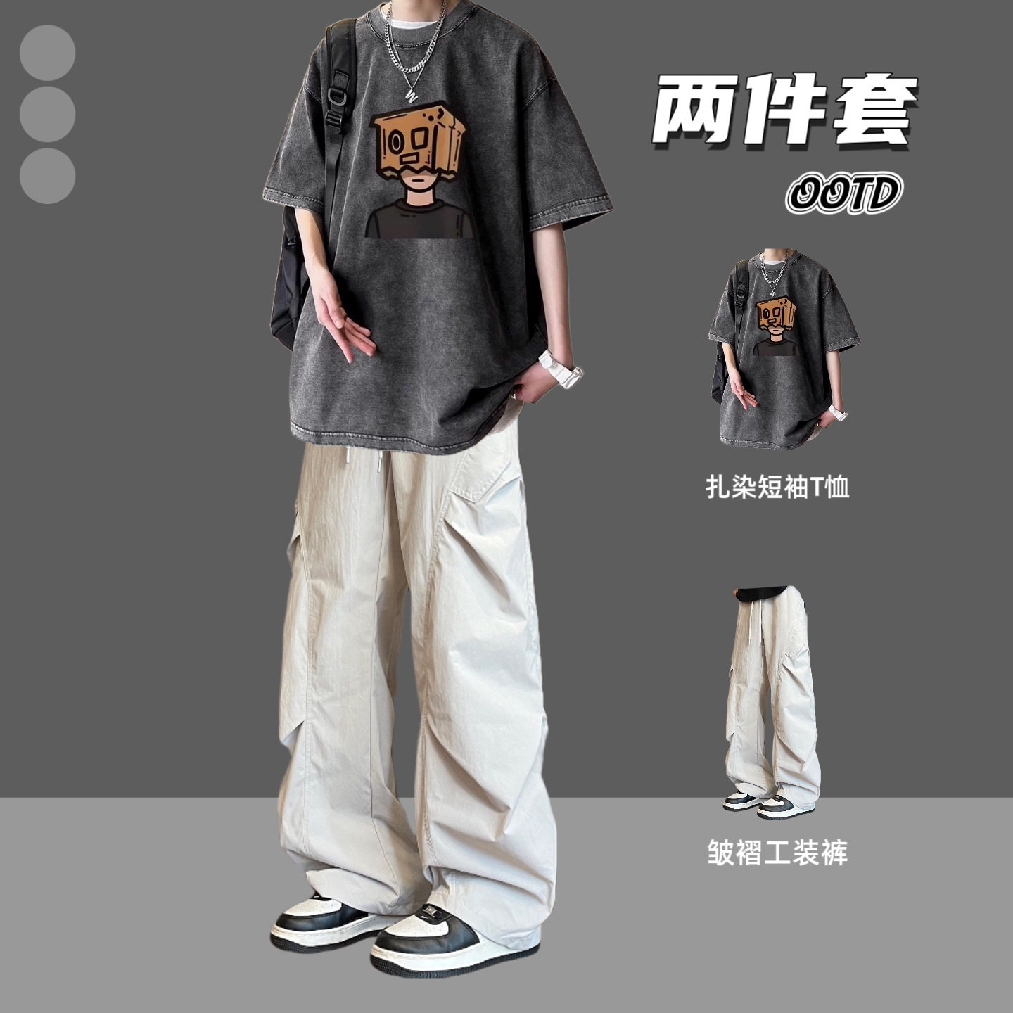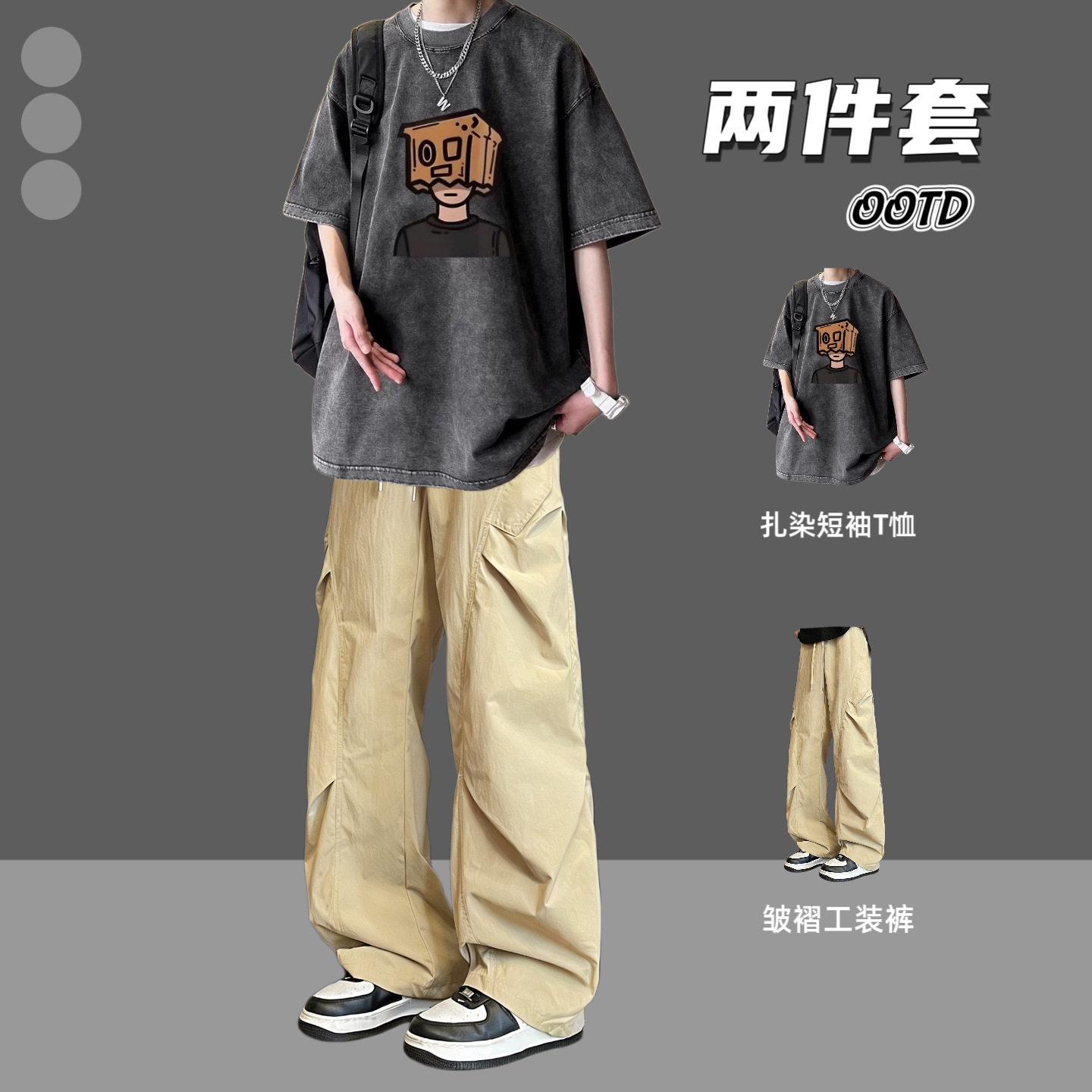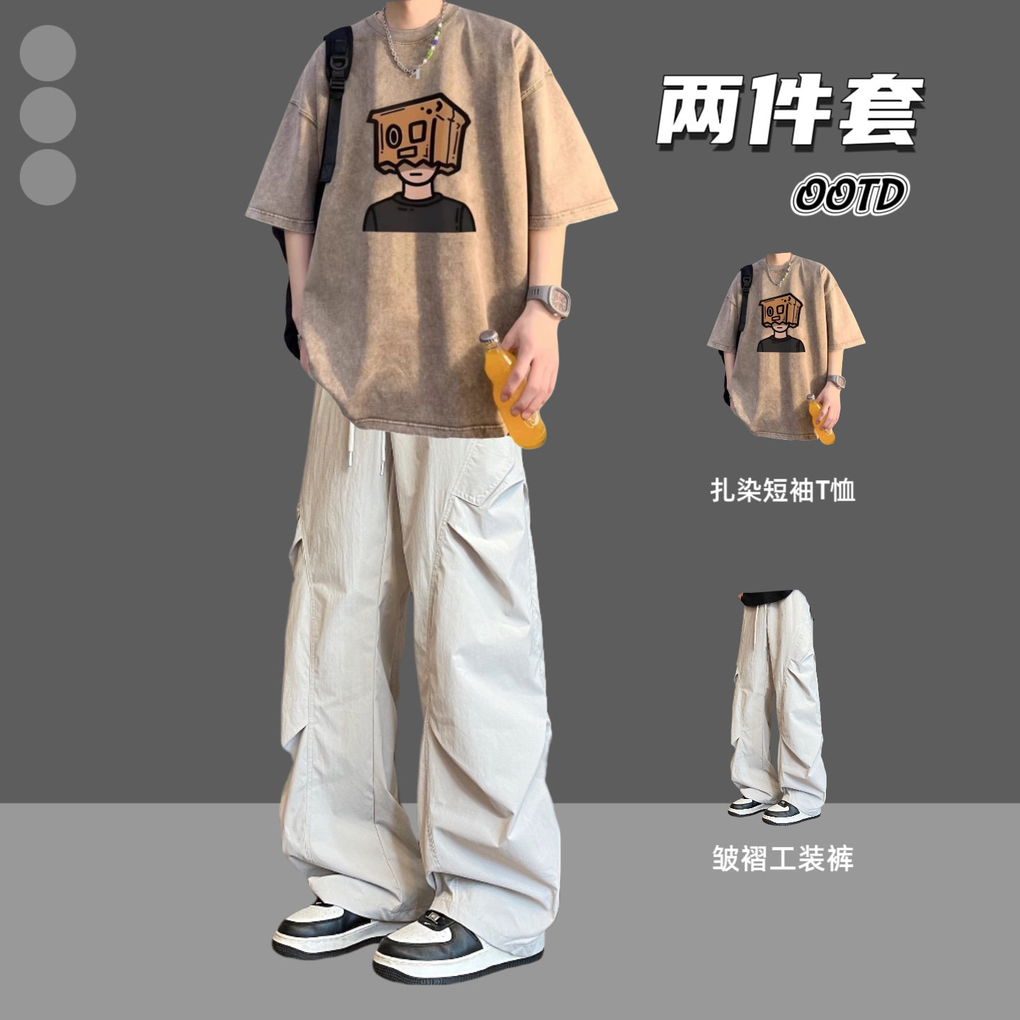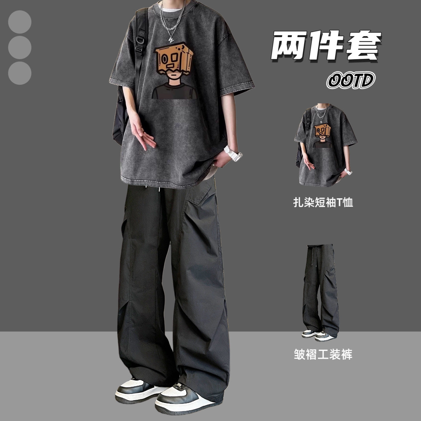 --------------------- BENTIDEA 设计感水洗纯棉宽松短袖T恤套装男夏季2026新款半袖潮牌 【原售价】180元 【现售价】99元 【推荐理由】