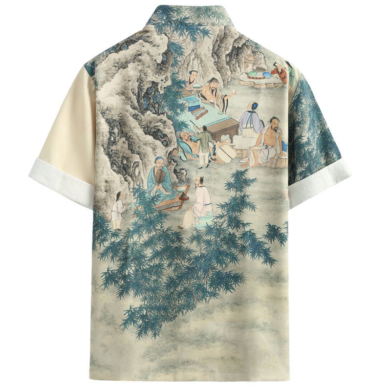 --------------------- 玄笙改良唐装男夏季短袖国潮印花宽松时尚中国风复古盘扣上衣男 【原售价】458元 【现售价】227元 【推荐理由】