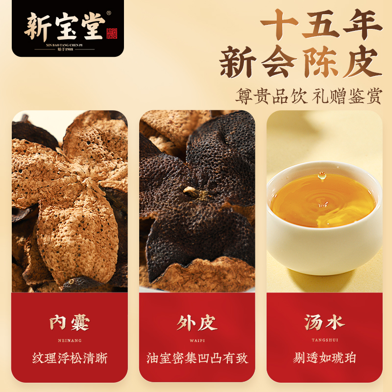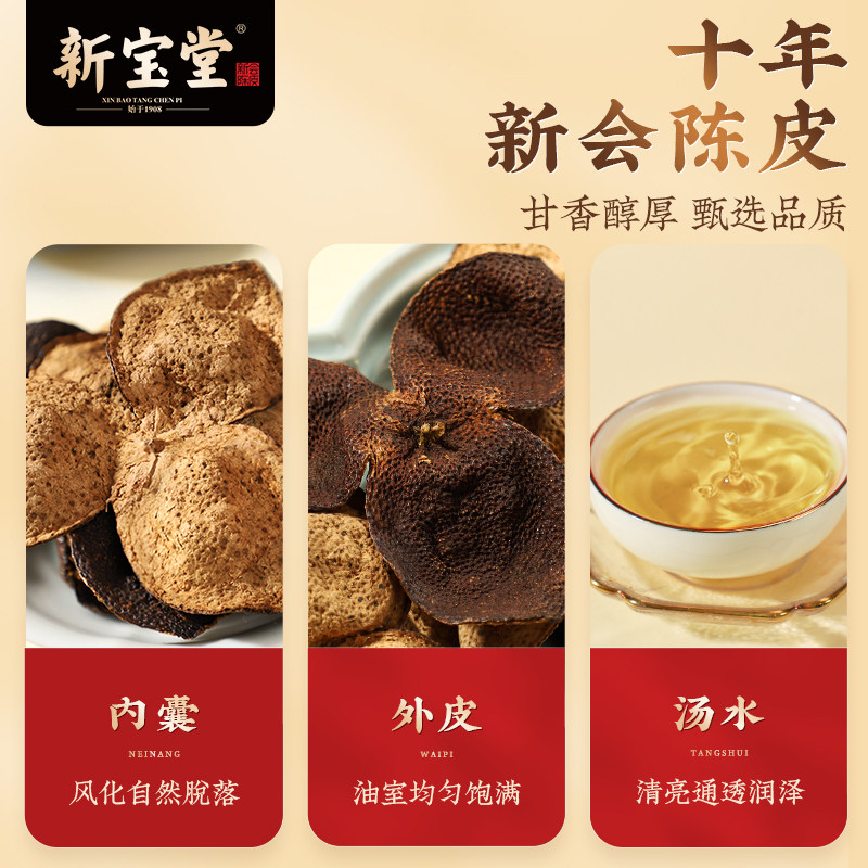 新宝堂旗舰店五年十年十五年二十年新会老陈皮陈皮茶50克送礼
