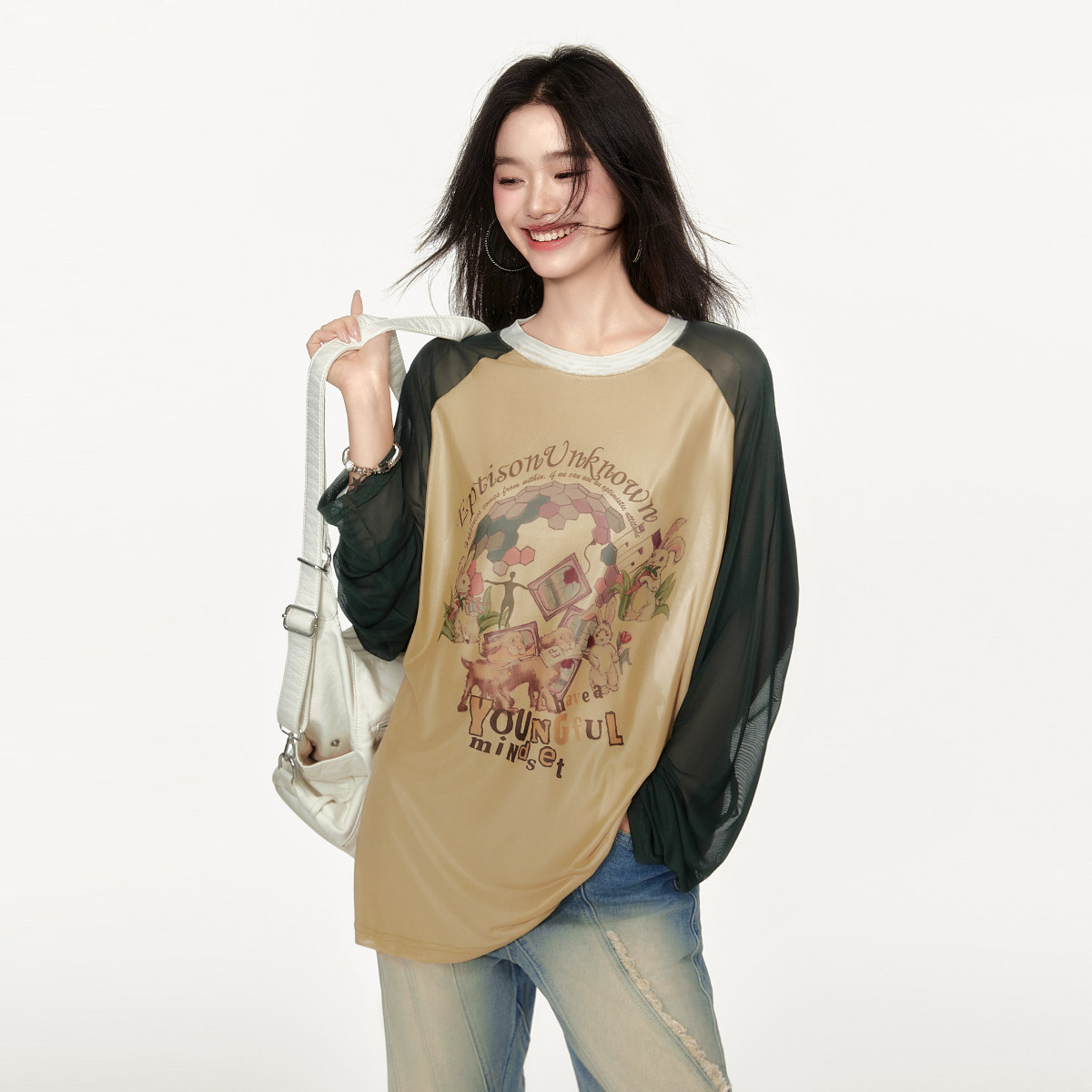 EPTISON雪纺衫女2026年夏季新款复古轻薄美式波嬉风插肩袖T恤上衣