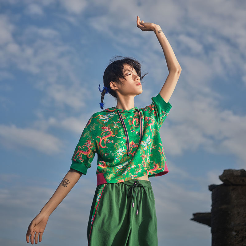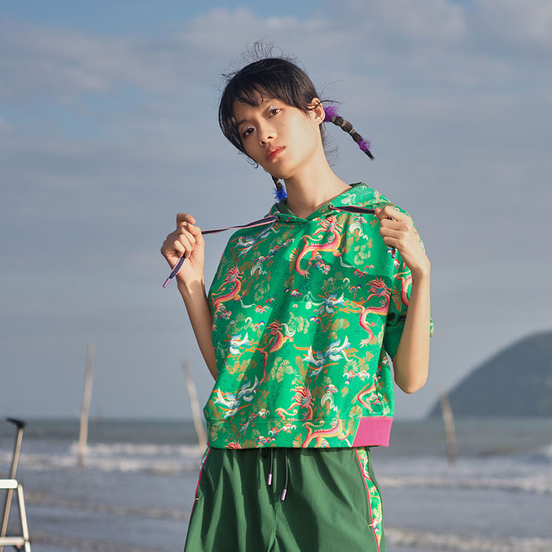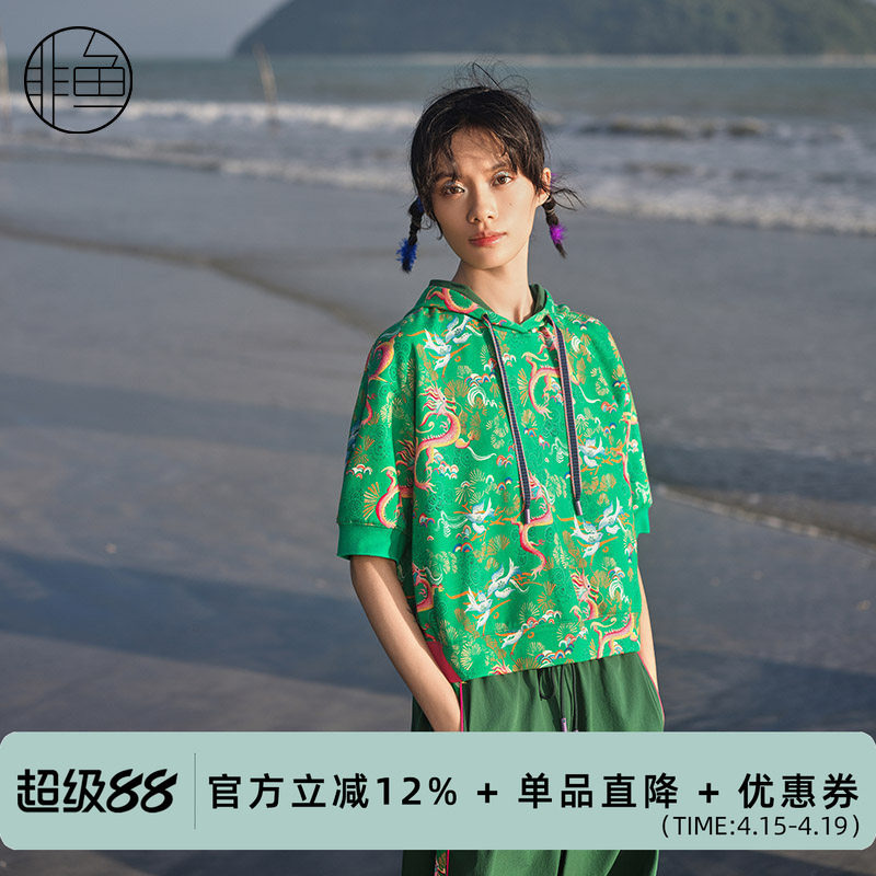 --------------------- 非鱼国潮风连帽套头卫衣2024夏季新品印花针织原创设计短袖上衣 --------------------- --------------------- 【原价】958元 【券后价】226元