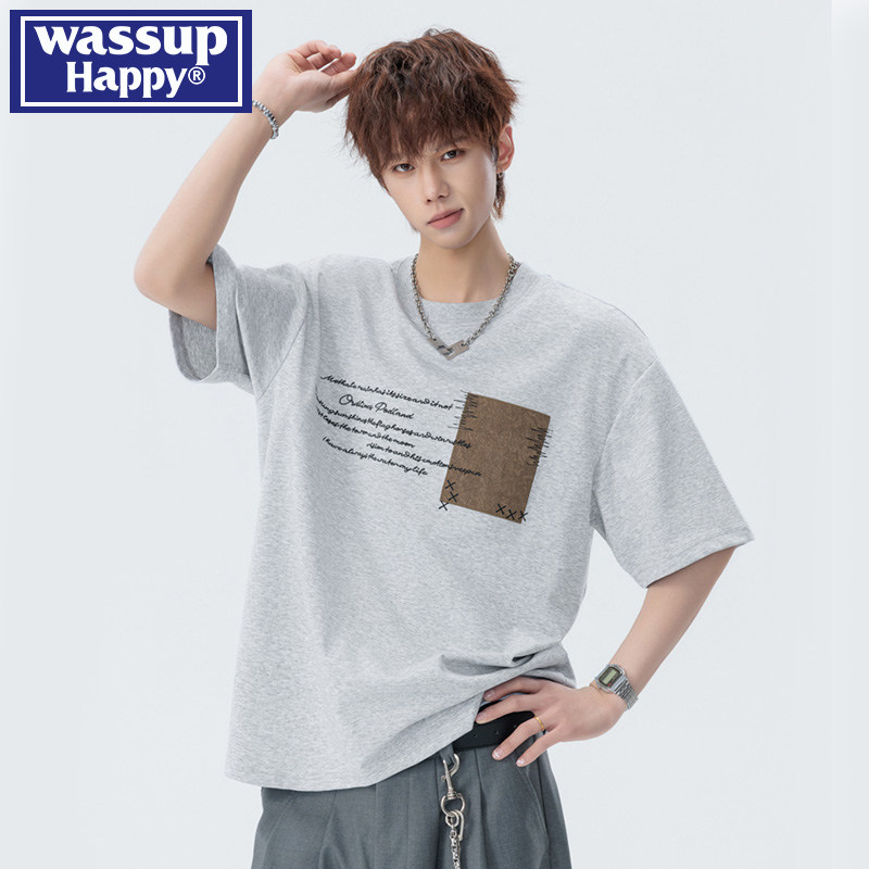 wassup happy字母印花短袖t恤男士夏季新款宽松百搭休闲半袖体恤