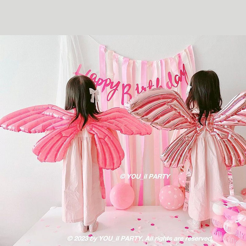 淘宝韩国ins女孩可爱装扮粉色天使蝴蝶翅膀气球派对拍照道具生日气球