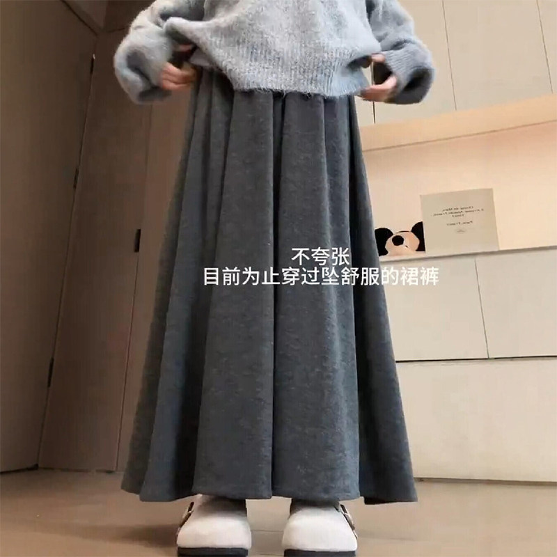 深灰色针织糯米裤裙胖mm大码春季半身裙裤垂坠感软糯小个子阔腿裤