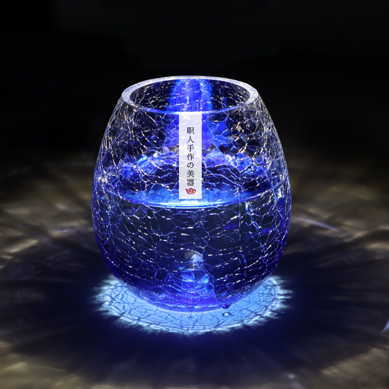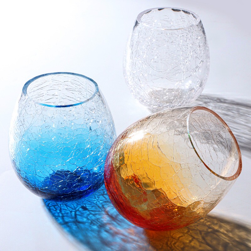 日式海洋冰裂纹玻璃杯高颜值水杯女果汁饮料杯子女夏气泡啤酒杯男