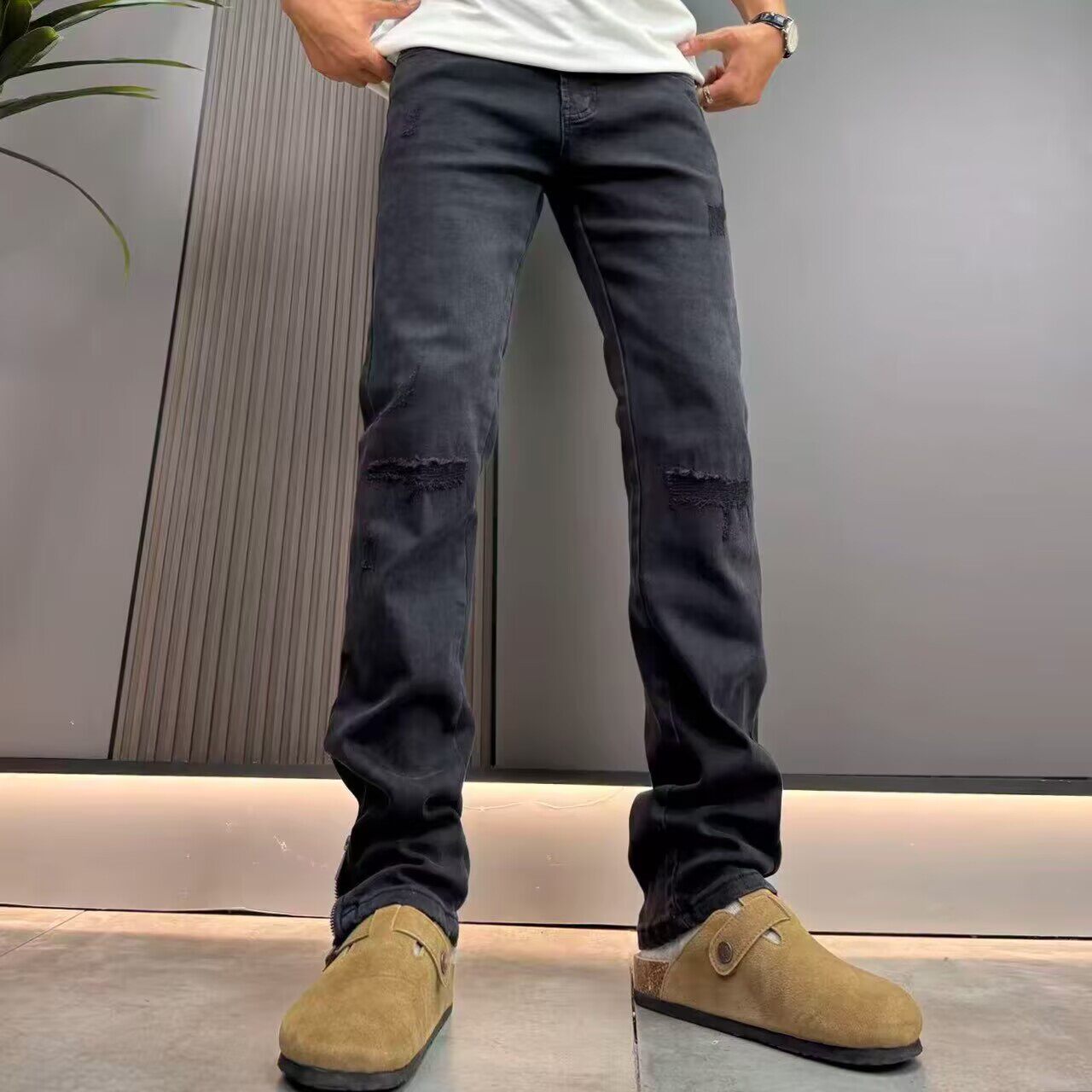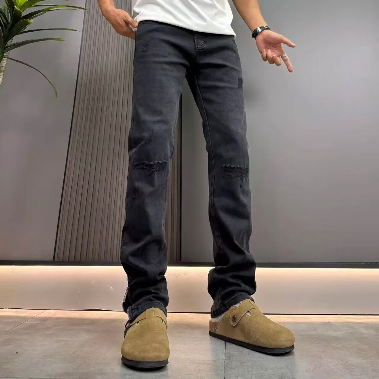--------------------- 设计款破洞补丁牛仔裤男黑灰色秋冬季新款刮烂脚口拉链直筒长裤潮 【原售价】316元 【现售价】139元 【推荐理由】