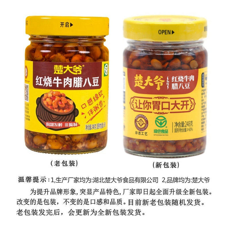 --------------------- 楚大爷红烧牛肉腊八豆 248g*2瓶黄豆酱下饭菜辣椒酱拌面酱湖北产 【原售价】32.8元 【现售价】20.5元 【推荐理由】