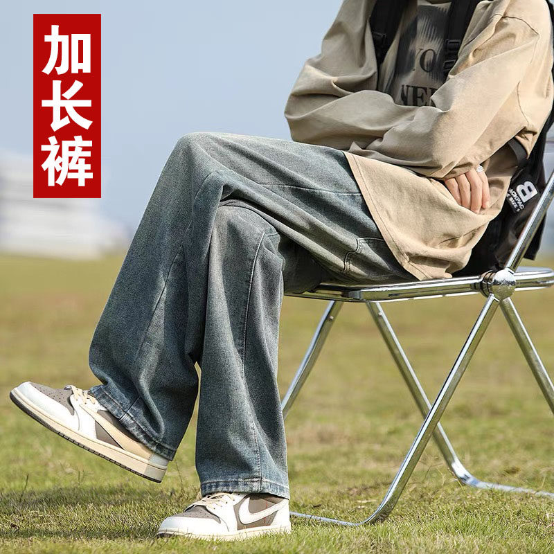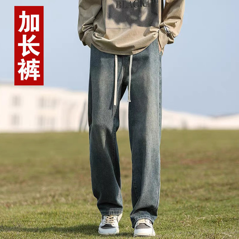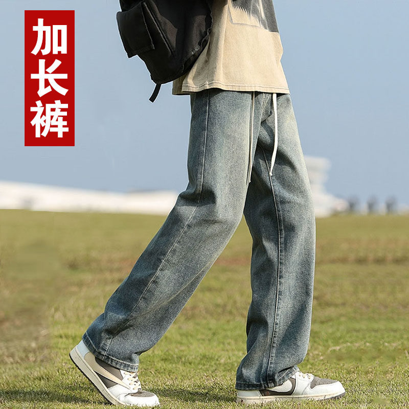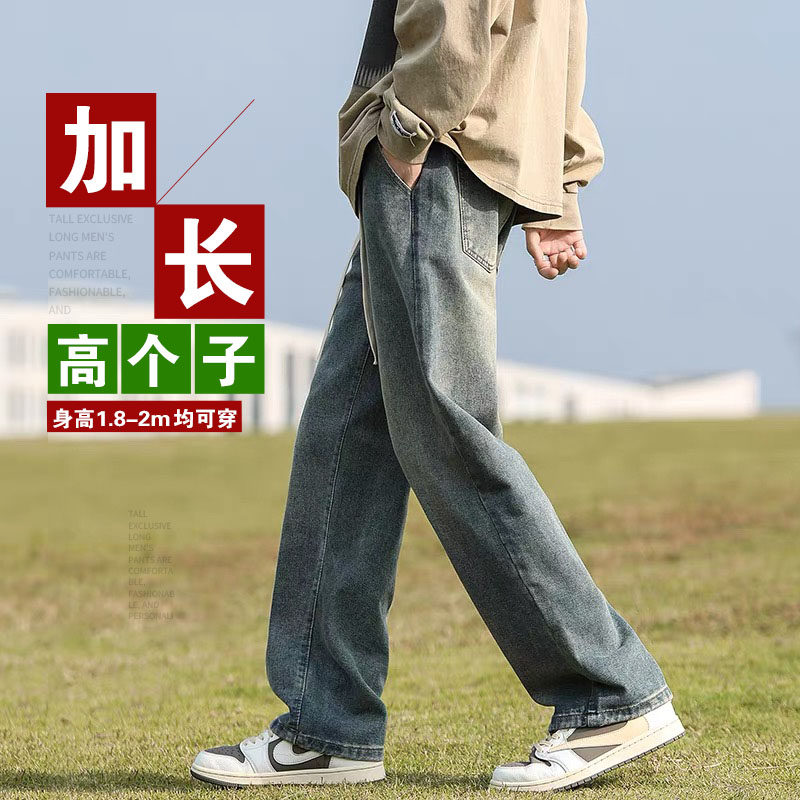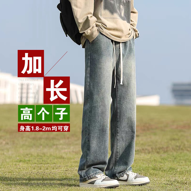 青少年春夏季190cm高个子加长版裤子男潮美式直筒宽松阔腿牛仔裤