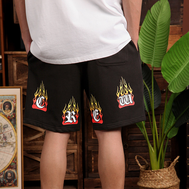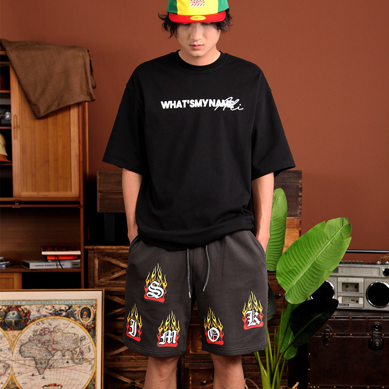 【SIMOK官方店】国潮美式毛圈运动四分卫裤宽松休闲男女印花短裤